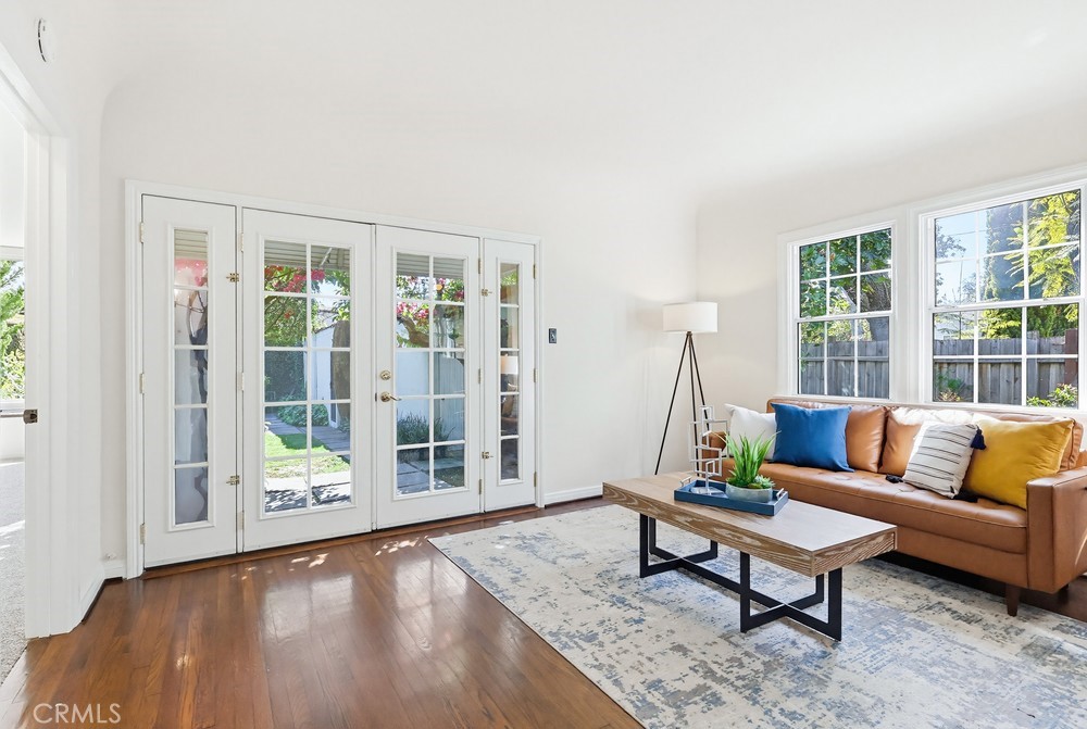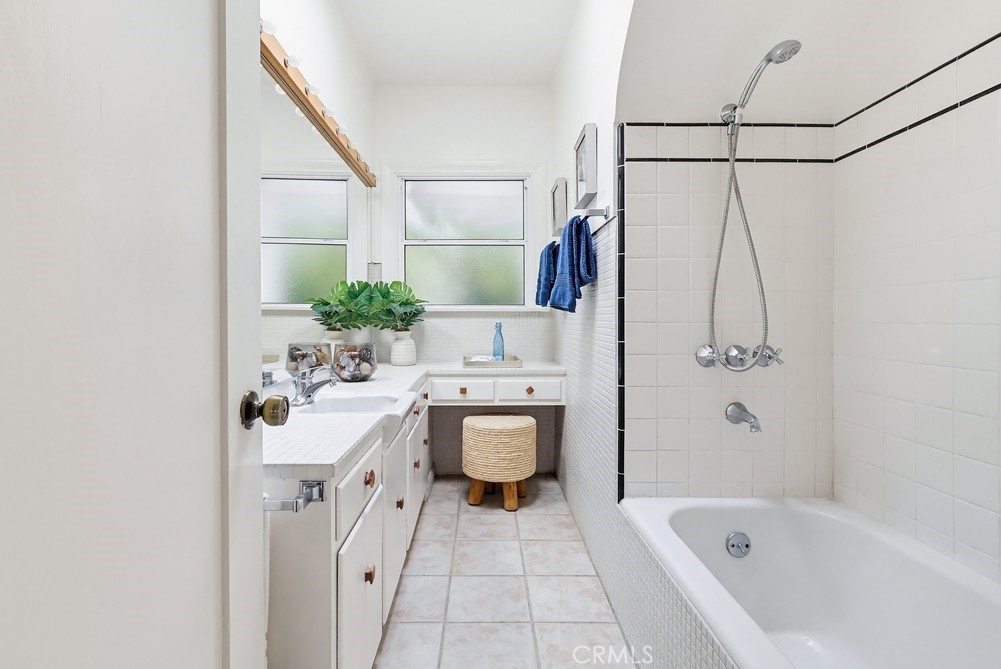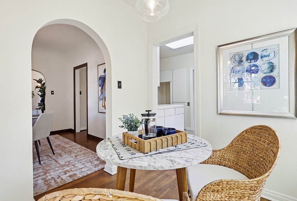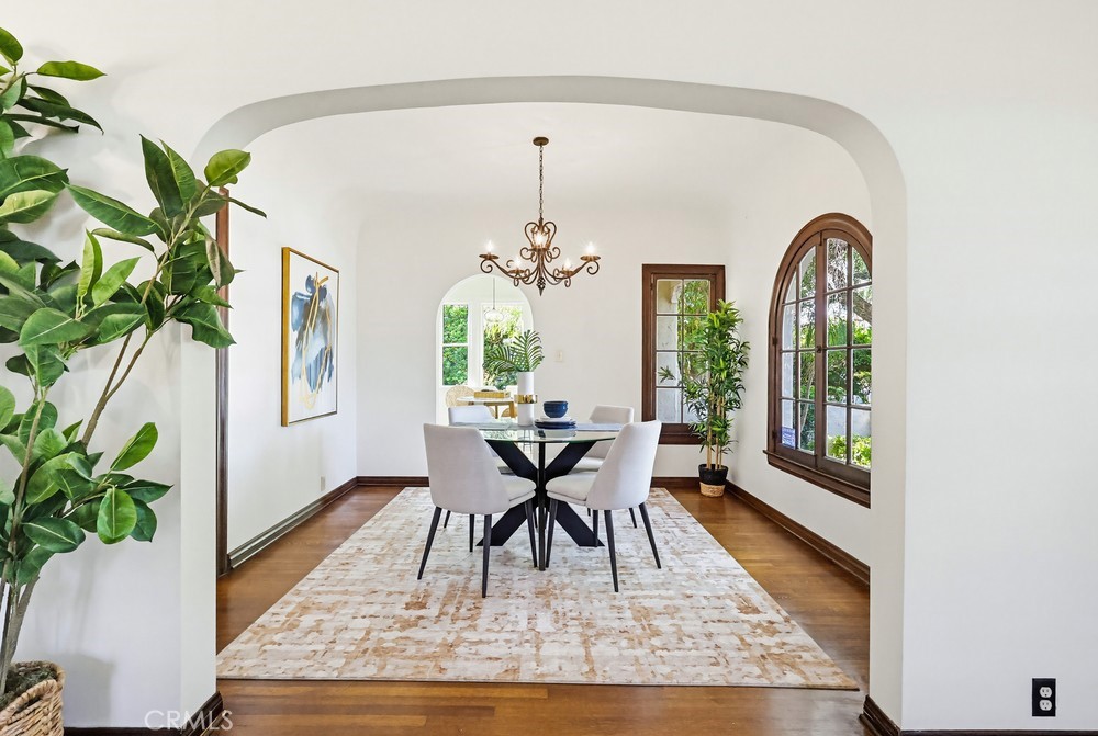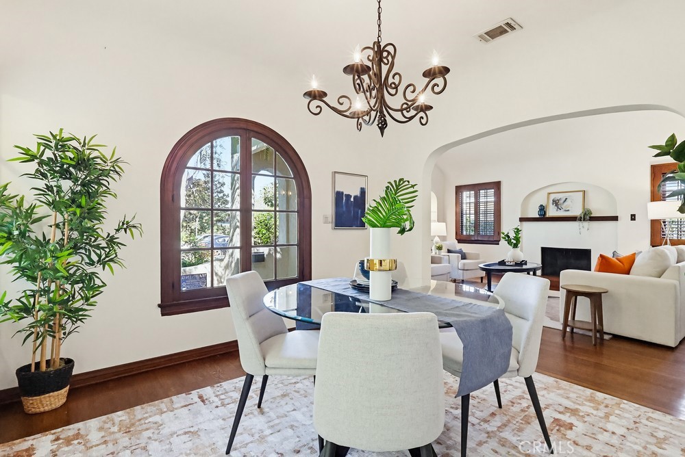This is the Spanish Revival you’ve been dreaming of—rich in character, beautifully maintained, and brimming with original charm. Nestled on a hidden gem of a street in the coveted Los Cerritos neighborhood of Long Beach, this home stands out with its thick stucco walls, graceful arches, red-tiled roof, and lush, mature landscaping. Step inside and fall in love with the soaring ceilings of the living room, highlighted by a dramatic arched front window, a cozy fireplace, built-in shelving, and wrought-iron original wall sconces. Arched transitions lead you seamlessly into the elegant dining room and a delightful breakfast nook—perfect for enjoying your morning coffee. The smooth white walls throughout the home are perfectly complemented by rich, dark wood flooring and original woodwork, showcasing timeless craftsmanship. The kitchen, bathed in sunlight from its south-facing window, is bright, airy, and conveniently adjacent to a side entrance leading to the laundry room. Down a long, arched hallway, you’ll find a cozy den featuring French doors that open to the backyard, where lush Bougainvillea adds a vibrant pop. Both the den and the rear primary bedroom offer tranquil backyard views, creating a serene retreat. The spacious primary bedroom has high ceilings, large windows, ample storage, and an ensuite bathroom with a walk-in shower and a generous vanity area. The private backyard is perfect for relaxing or entertaining and includes an oversized garage with alley access. Recent updates include a brand-new, permitted roof and a 2024 HVAC system, ensuring modern comfort in this timeless home. Located in the heart of Los Cerritos, this neighborhood is known for its walkable charm, proximity to Bixby Knolls’ shopping and dining, and easy access to freeways—all while maintaining a welcoming, small-town vibe. This exceptional home is a rare find and is sure to capture hearts quickly. Don’t let it slip away!