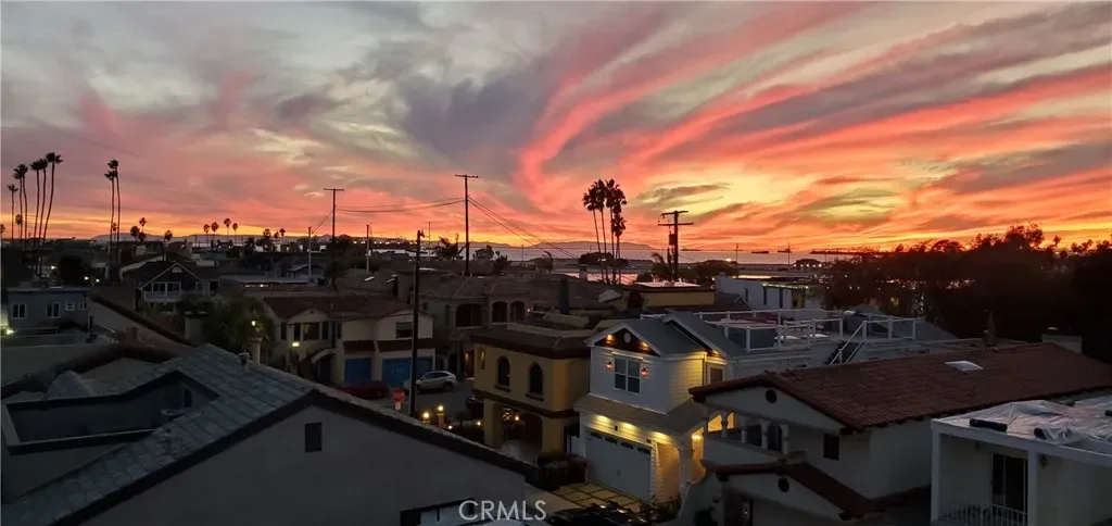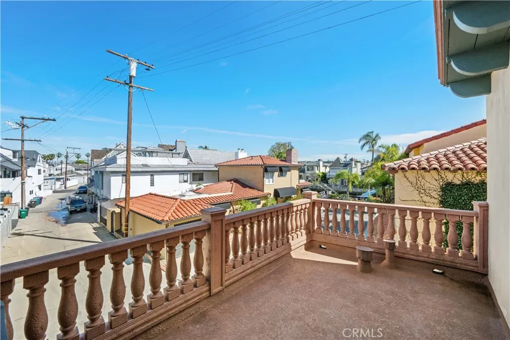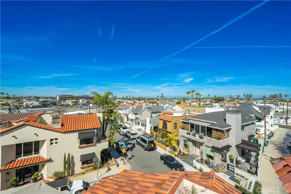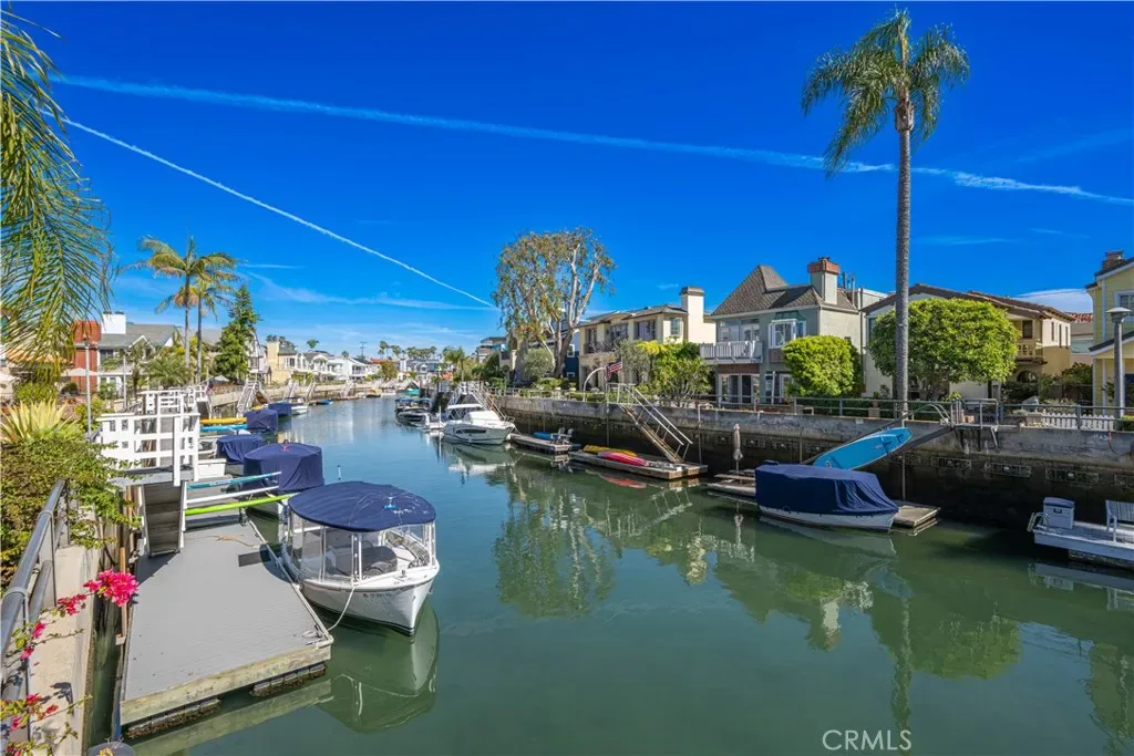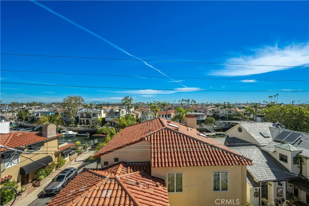 First floor also has a spacious 3/4 powder room with vanity, wood cabinets, crown moldings, a timeless chandelier and travertine flooring. A Guest room next to the bath, has wood flooring, coved ceilings and mirrored wardrobe doors. Next to this guest bedroom is the first level Family room or Den, complete with wood cabinetry built-ins, TV, wood flooring and a sliding door. Then moving upstairs on the open staircase with wood treads, you arrive on the second floor landing. There is a full office and complete with built in desks and storage closet, vaulted ceilings and carpet. There is a Guest bath with tub shower, tile and flooring and porcelain counters, and wood vanity. Guest bedroom number two has mirrored closets doors, carpet flooring, crown moldings and a view patio. There is an upstairs laundry room complete with washer and dryer that will stay with the property. Enter the Primary suite through double doors with hardwood flooring, Fireplace, Crown moldings, mirrored closet doors, light and bright with large oversized windows for maximum light. The beautiful and elegant Primary bath has marble counters, beveled mirrors vanities, Jacuzzi tub, cabinetry is built in furniture grade, plus tile flooring and a clear glass spacious shower. Moving up to the Third floor level, there is a Bonus game room with wet Bar, powder room, panoramic canal and neighborhood views and with a private patio. Finally, for the ultimate in panoramic views of Naples, Catalina Island and Palos Verdes, enjoy the roof top deck from the tallest home in the area.