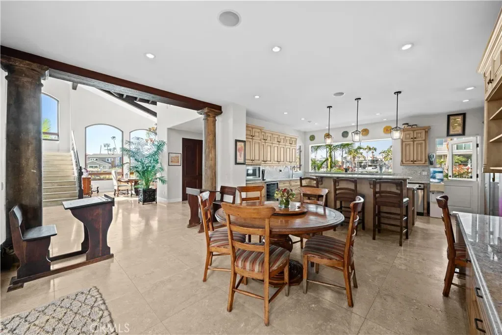 Welcome to one of Naples Islands most desirable and unique locations. Situated on an oversized, corner waterfront 4,446 sq. ft lot, this Tuscan inspired Mediterranean masterpiece is a One of a Kind property. This special property is surrounded by the largest dock in the area, w/this private dock the owners can accommodate multiple watercraft and a 75ft plus yacht. This premier property is on Rivo Alto Canal, Naples Canal, The Colonnade Canal and Alamitos Bay and overlooking The Colonnade Park, capturing the most amazing panoramic views in all of Naples. All of this is surrounded by the newer Phase Two seawall. Enjoy paradise while entering through timeless wood, double entry doors, into the expansive open air interior with two story ceilings, wood beamed Dining room and staircase to the upper level. Formal Living room w/hardwood flooring and majestic oversized fireplace, a beamed ceiling, all while enjoying the panoramic water views. Turn around and enjoy the spacious private courtyard c/w an in-ground Spa and Barbecue. The gourmet Chefs Kitchen features a Viking 6 Burner Range, Dacor Ovens, Subzero Refrig, Custom Wood Cabinets, Travertine Flooring, Dual Bosch Dishwashers, while looking out of an oversized window w/views of the Canal and Park. There is also a Home Theater room c/w a Wet Bar and a private bathroom. There is an oversized two car garage, as well. Moving up the open staircase to the Primary Suite, which overlooks The Colonnade Canal, Naples Canal and Alamitos Bay, enjoying morning views and stunning afternoon sunsets. With amazing High Beamed Ceilings, this fabulous bedroom is c/w a wonderful Fireplace, an outdoor balcony, and hardwood flooring, all making this a very special, private retreat. Enjoy the Primary Bath which is c/w Jacuzzi Tub, a large walk in dual shower, dual sinks and a large walk in closet. Moving down the open hall to the Formal Library/Office with built in wood cabinets, this special room has tall ceilings and a Loft for more books and memorabilia. It also has a private view patio off the Library w/water, canal and park views. There are two more bedrooms down the hall, sharing an adjacent full bath. There is also a guest bedroom w/ bathroom and a tub shower. Next is the dedicated gym on the water’s edge, c/w a steam shower and Sauna.