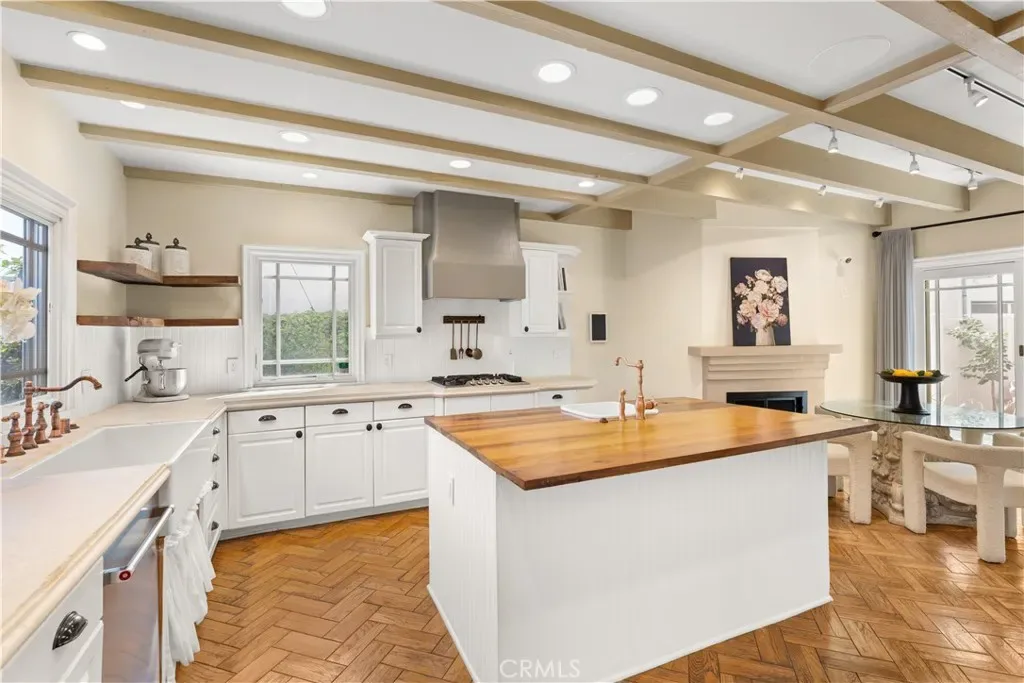 Experience refined coastal living in this exquisite French Provincial tri-level home, ideally positioned in exclusive Naples Island of Long Beach. Just steps from the scenic waterways and moments from world-class dining, this beautifully appointed residence offers timeless elegance with flexible furnishing options to suit your lifestyle. The first level welcomes you with a grand entry that opens to a formal living room featuring soaring vaulted ceilings, a fireplace, and a wet bar, perfect for entertaining your guests. The formal dining room showcases a stunning coffered ceiling with decorative floral inlays, and a stunning chandelier adding a touch of sophistication. A spacious eat-in kitchen anchors the rear of the home, complete with a large center island and prep sink, full suite of appliances, and direct access to a private patio with built-in BBQ, ideal for alfresco dining. A guest powder room, indoor laundry, and direct-access two-car garage complete this level. The second level offers three bedrooms and a large family/media room with its own wet bar and wine refrigerator. One of the bedrooms features an en suite bath, while another versatile space toward the rear adapts beautifully as a private bedroom, executive home office, or personal fitness studio, perfect for today’s flexible lifestyle. A second full bath serves the remaining rooms. Ascending to the third level, you’ll find the primary suite, a serene retreat featuring a fireplace, walk-in closet, and a newly remodeled spa-inspired bath with floor-to-ceiling tile, a floating vanity, modern fixtures, and an expansive dual-head walk-in shower. The entire suite is designed for privacy and comfort, separated from the rest of the home. A few steps above the primary suite leads to the rooftop deck, an entertainer’s dream with panoramic 360º views of Naples Island, comfortable patio seating, and a gas fire pit that is perfect for sunset gatherings or evening relaxation. This exceptional home combines timeless European charm with modern amenities, all within Naples Island’s coveted waterfront enclave, one of Southern California’s most distinguished residential communities.