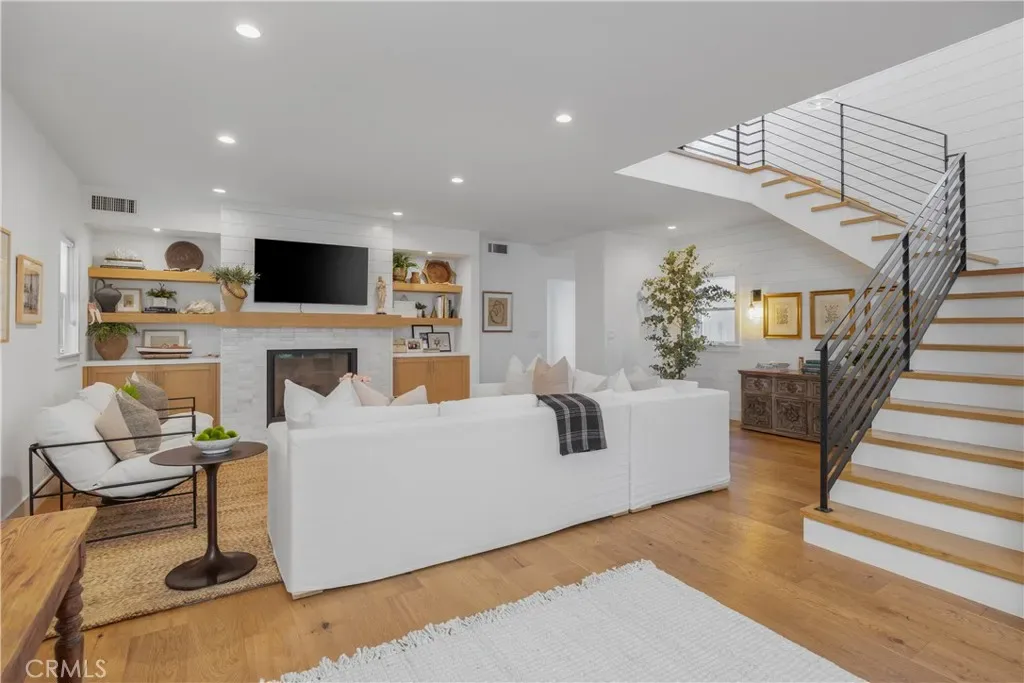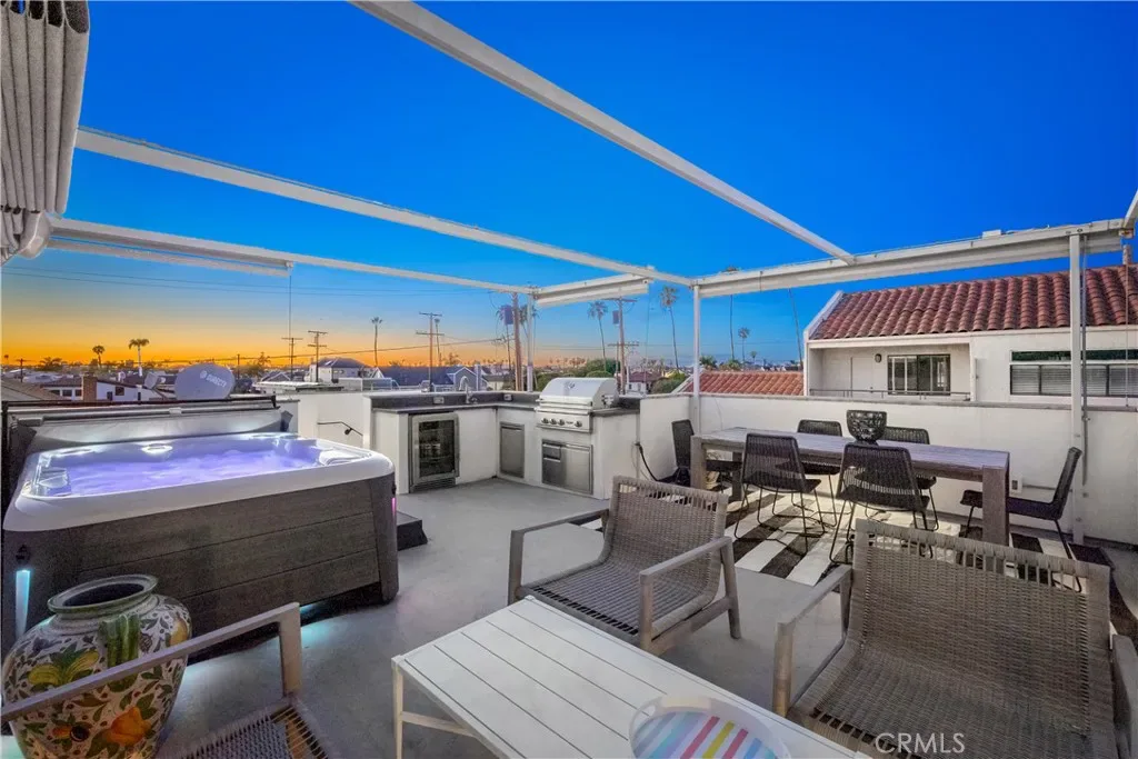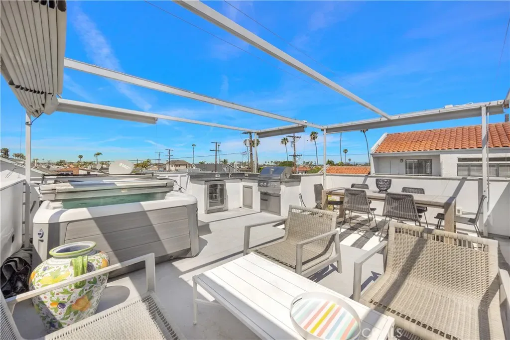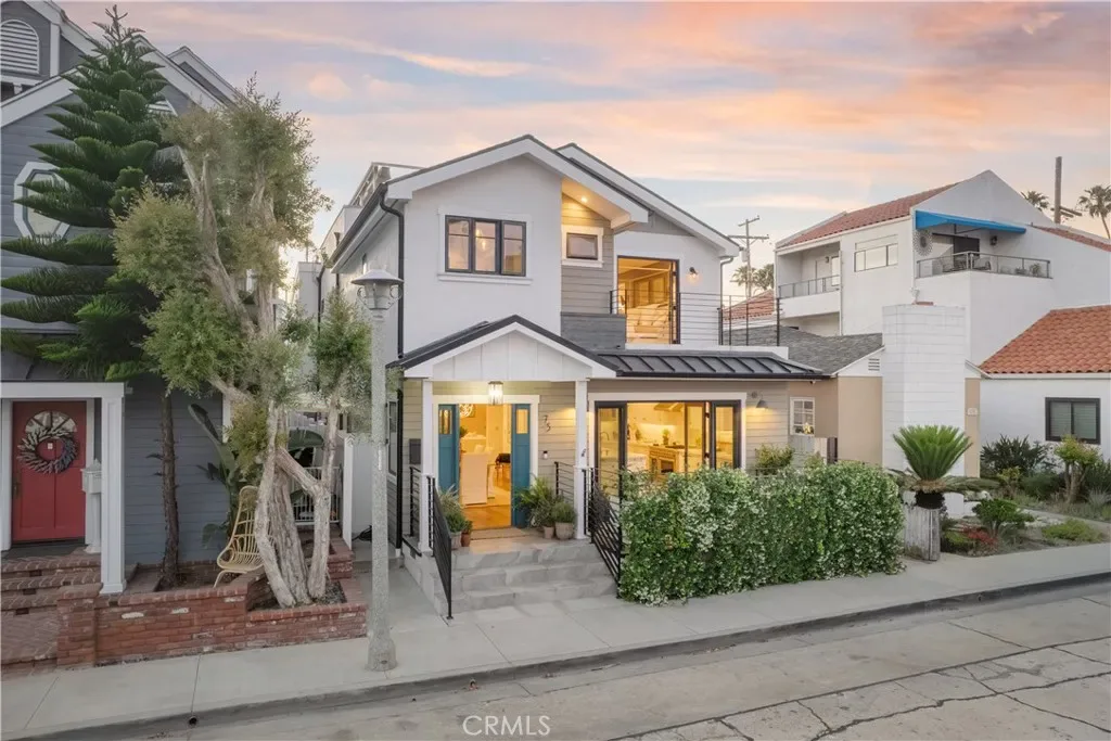 Positioned within the prestigious Estates section of Naples Island, 75 Angelo Walk is a masterfully reimagined coastal residence that embodies modern luxury, architectural precision, and effortless indoor-outdoor living. Spanning approximately 2,916 square feet, this 3-bedroom, 3.5-bath home has been completely rebuilt with an uncompromising commitment to quality, design, and detail. A striking façade of clean lines and contemporary form sets a compelling first impression, while inside, a light-filled open floor plan unfolds with warmth and sophistication. Wide-plank hardwood floors, soft tones, and curated lighting create a refined backdrop for everyday living and elevated entertaining. At the heart of the home, a bespoke chef’s kitchen seamlessly pairs form and function, featuring professional-grade stainless steel appliances, handcrafted cabinetry, stone countertops, a statement island with bar seating, and an integrated wine refrigerator. The adjoining dining and living spaces flow effortlessly, anchored by a custom-designed fireplace wall with built-in shelving, offering both comfort and architectural interest. The upper level introduces a secondary living area designed for flexibility, along with well-appointed guest accommodations showcasing vaulted ceilings, designer finishes, and en-suite privacy. The primary suite is complete with a custom walk-in wardrobe and a spa-inspired bath featuring a sculptural soaking tub, dual vanities, and an expansive walk-in shower. A private balcony extends the experience, offering a tranquil setting for morning light and ocean air. Crowning the home, the rooftop terrace delivers a resort-caliber experience with a fully equipped outdoor kitchen, BBQ, wine refrigerator, jacuzzi, and multiple lounge areas—all enhanced by retractable awnings for year-round enjoyment and privacy. Beyond its aesthetic appeal, the residence is thoughtfully engineered for sustainability and efficiency, featuring fully paid solar panels and dual Tesla Powerwalls—allowing for significant energy independence rarely found in luxury coastal homes. Completing the offering is a 2-car attached garage and an unparalleled location just moments from the canals, beaches, and the vibrant dining and boutique scene that defines Naples Island. This is a rare opportunity to own a turnkey architectural home that seamlessly blends modern design, coastal elegance, and cutting-edge efficiency in one of Long Beach’s most coveted waterfront communities.