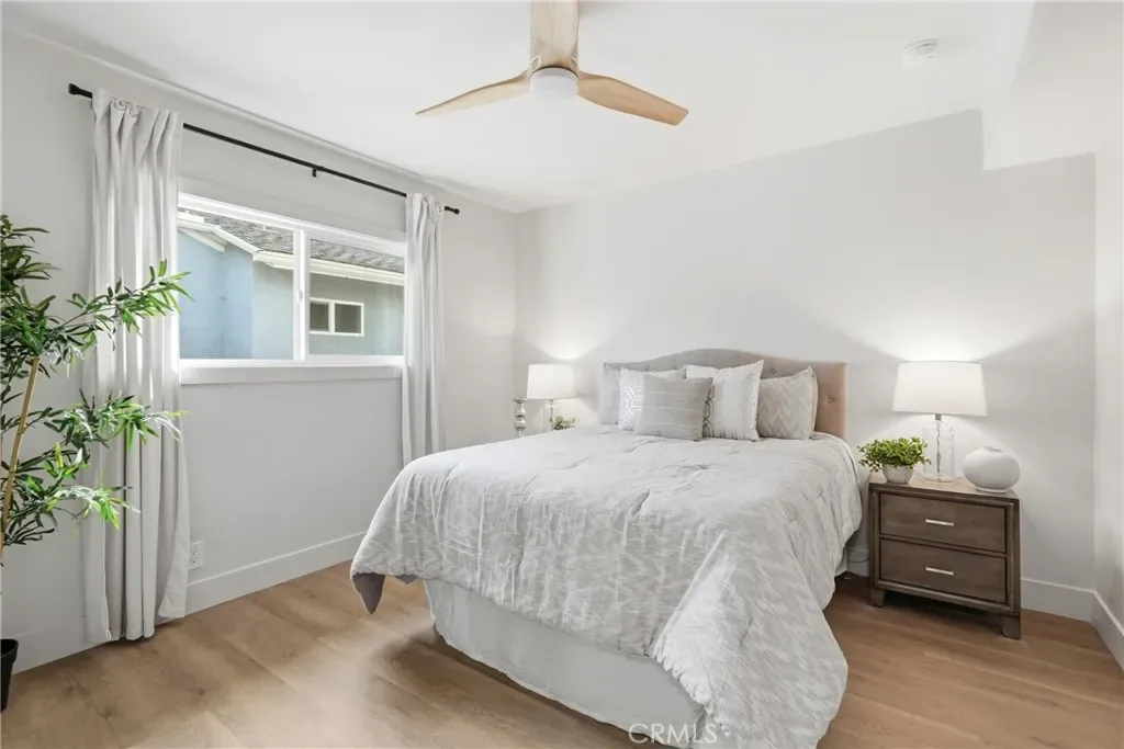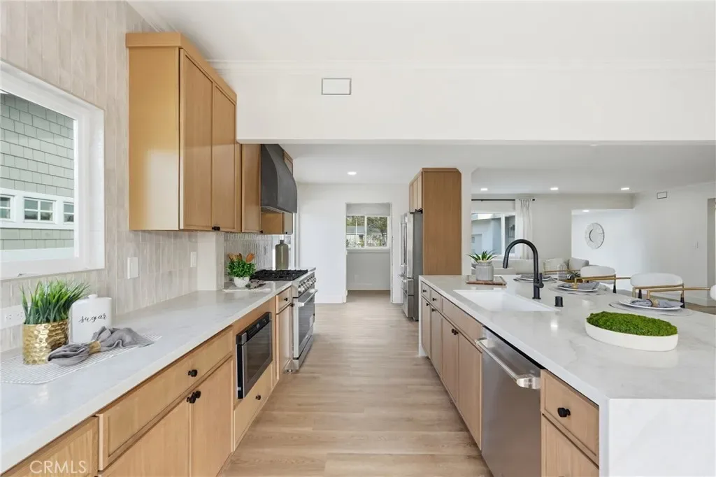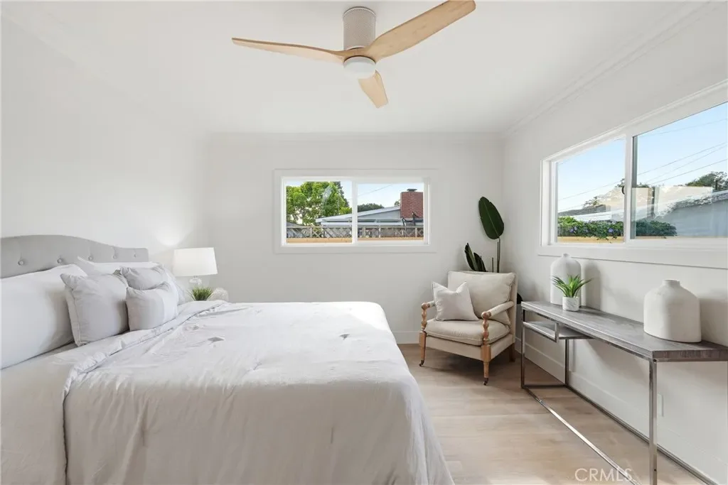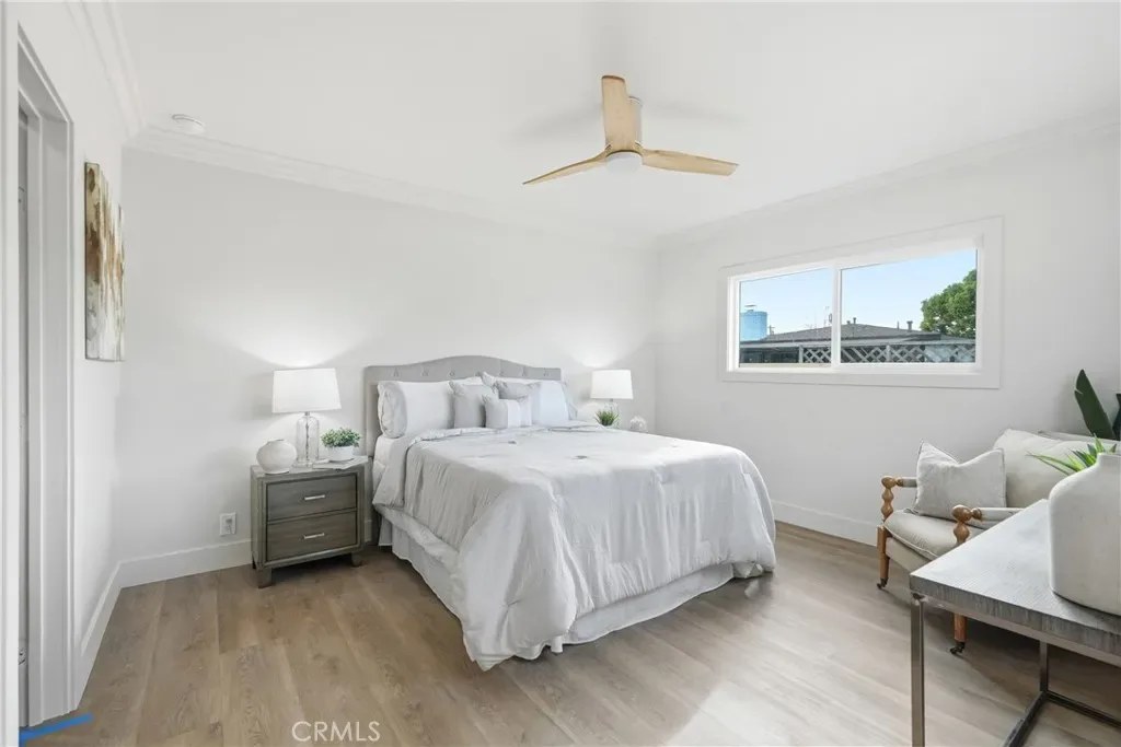 The living room features a remodeled fireplace, opens to the kitchen, and offers a view of the glass staircase leading to the primary retreat. The kitchen has a waterfall island, soft-closing drawers & cabinets, new appliances, and folding doors that create indoor-outdoor living for the perfect entertainer’s dream. Off the kitchen, you will find a dedicated laundry room with custom cabinets. There is dining room space inside the home and in the backyard for those beautiful, warm Long Beach evenings. On the first floor, the home has three bedrooms and two bathrooms, with one of the bedrooms serving as the primary bedroom. On the second floor, there are two bedrooms and one bathroom, with one of the bedrooms serving as the primary bedroom.