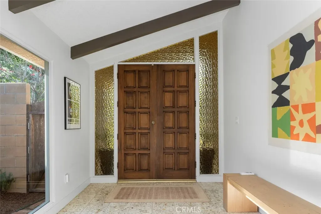 A rare opportunity to own an exceptional, architecturally significant mid-century residence attributed to renowned Long Beach designer Paul Tay, celebrated for his dramatic rooflines, voluminous interiors, organic integration of indoor and outdoor spaces, and meticulous attention to proportion and light. This beautifully updated home captures the spirit of Tay’s most iconic work while offering a refined, modern living experience. A terrazzo-clad entry flows into an expansive living room defined by soaring vaulted ceilings, a sculptural raised-hearth fireplace, and signature floor-to-ceiling glass that frames the lush, private backyard. True to Paul Tay’s residential aesthetic, the home features clean horizontal lines, warm natural materials, and a seamless visual connection between every interior space and the surrounding landscape. The newly remodeled kitchen is a contemporary showpiece, center island, sleek cabinetry, breakfast nook, and effortless flow into an inviting family room with sliders to the covered patio. The adjacent formal dining room is wrapped in natural wood finishes and opens to an intimate side courtyard, a hallmark of Tay’s affinity for protected outdoor vignettes. Two downstairs bedrooms accompany two beautifully remodeled bathrooms, including an oversized downstairs primary, along with a convenient laundry area that can be converted back into a third bedroom if required. Upstairs, the redesigned primary suite feels like a private retreat with vaulted ceilings, an entire wall of closets, a tranquil viewing balcony, and an elegantly redone bathroom featuring a separate soaking tub, walk-in shower, dual closets, and spacious built-in vanities. The home’s wraparound yard is both dramatic and serene, offering mature landscaping, new custom plantings, and multiple areas for dining, lounging, and entertaining. Additional recent improvements include a newer concrete tile roof, fresh interior and exterior paint, and new flooring throughout the first level with plush new carpet upstairs. An oversized two-car garage and sweeping driveway complete the property. Set on an interior tract in the highly coveted Park Estates, this custom Paul Tay residence blends architectural pedigree with thoughtful modern upgrades, creating a one-of-a-kind home for those who appreciate timeless mid-century design elevated for today’s lifestyle.