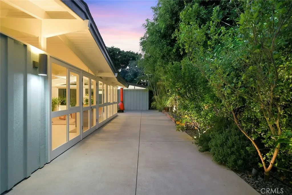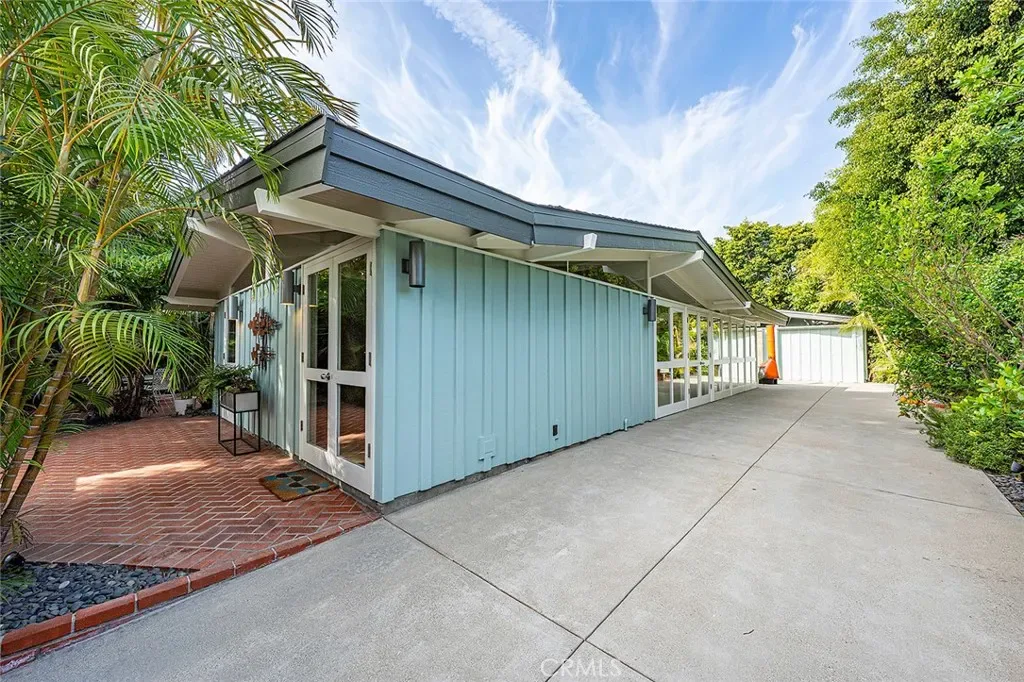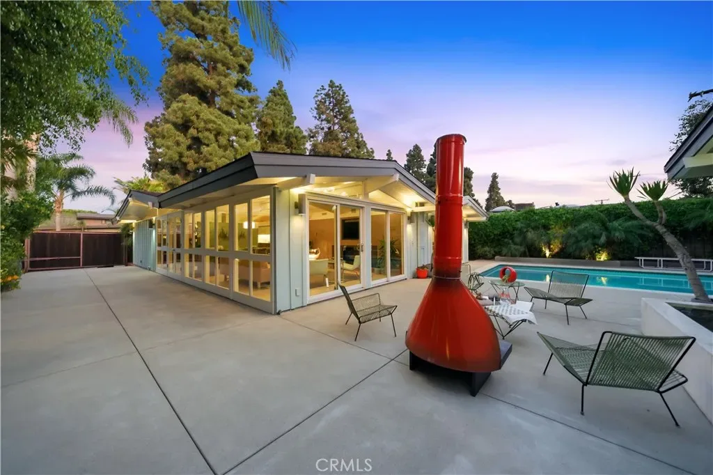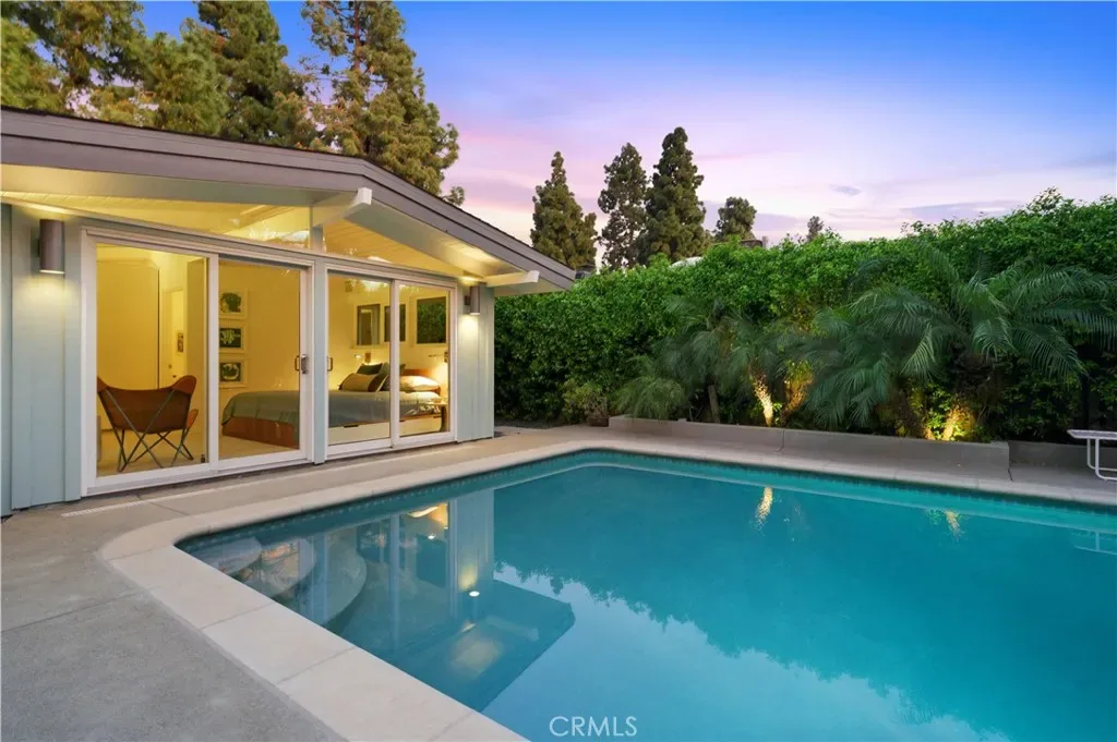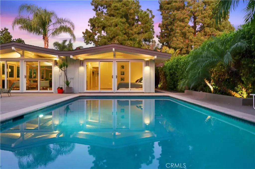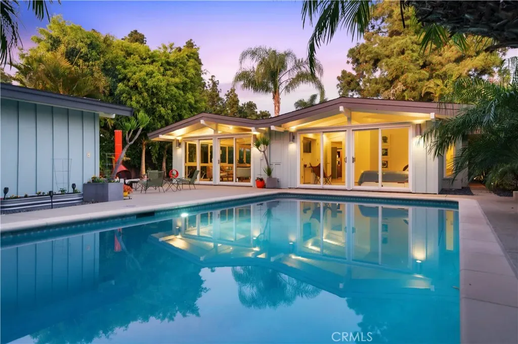Tucked away in a quiet interior location in the heart of the Rancho Estates, this exceptional Cliff May pool property is an oasis of serenity and modernity. Thoughtfully expanded by the current owners, the residence now spans nearly 1,700 square feet and features a spacious modern kitchen, upgraded bathrooms (with radiant floor heating in the primary bathroom), an enlarged living room with newer fireplace, updated flooring throughout, enhanced HVAC, and numerous additional improvements. The property is beautifully configured for entertainment and relaxation, with a privacy fence along the front of the property with automated driveway gate, abundant outdoor patio space, a detached garage with potential for either car parking or an ADU conversion, a large swimming pool, and lush tropical landscaping. Combining the timeless appeal of Cliff May’s iconic mid-century modern design with expanded living space, functional upgrades, and seamless indoor-outdoor flow, this property presents a rare and exceptional opportunity to experience the very best of Rancho Estates living.