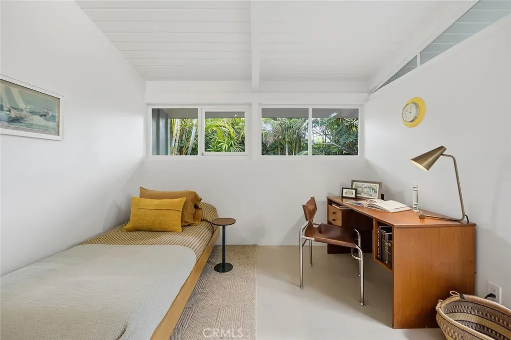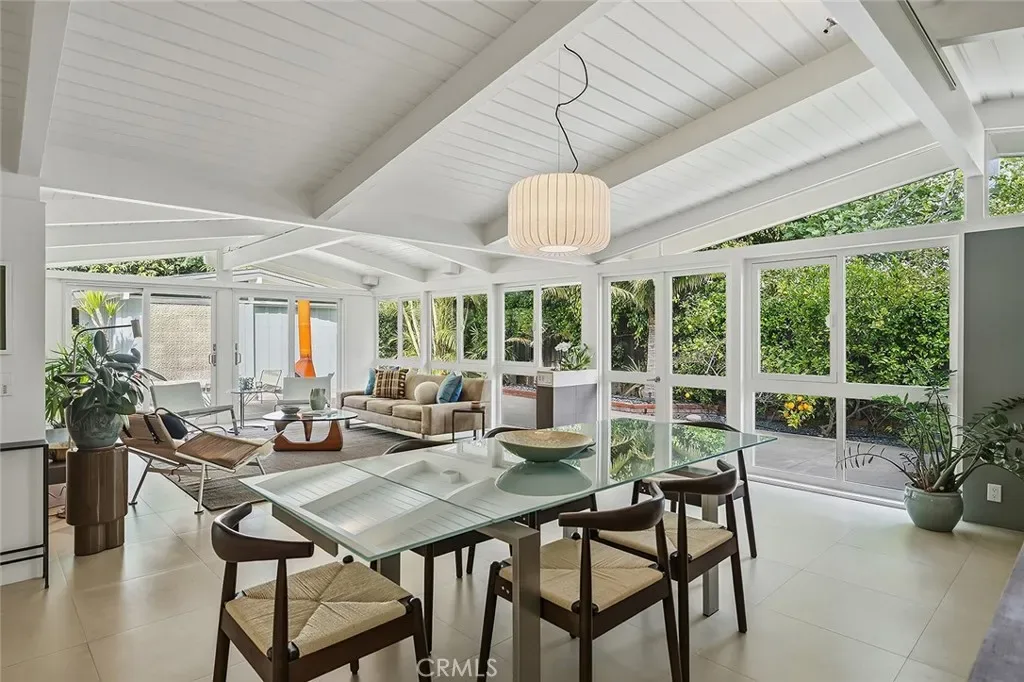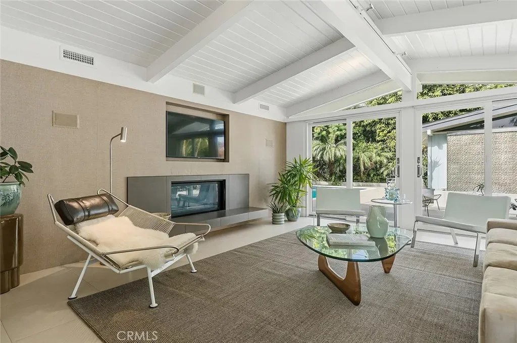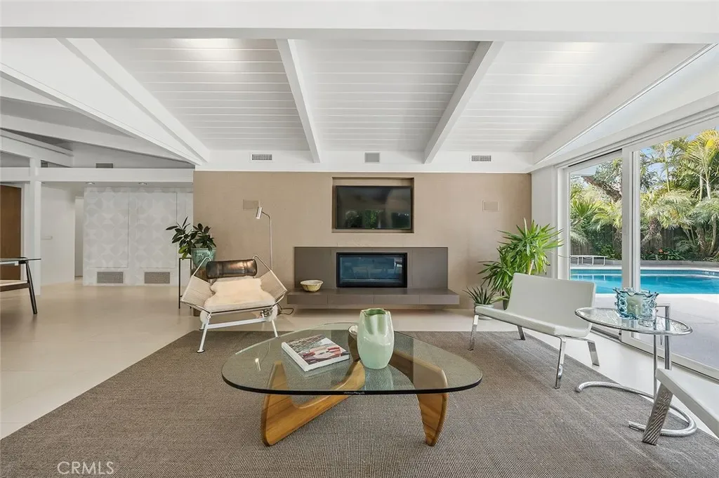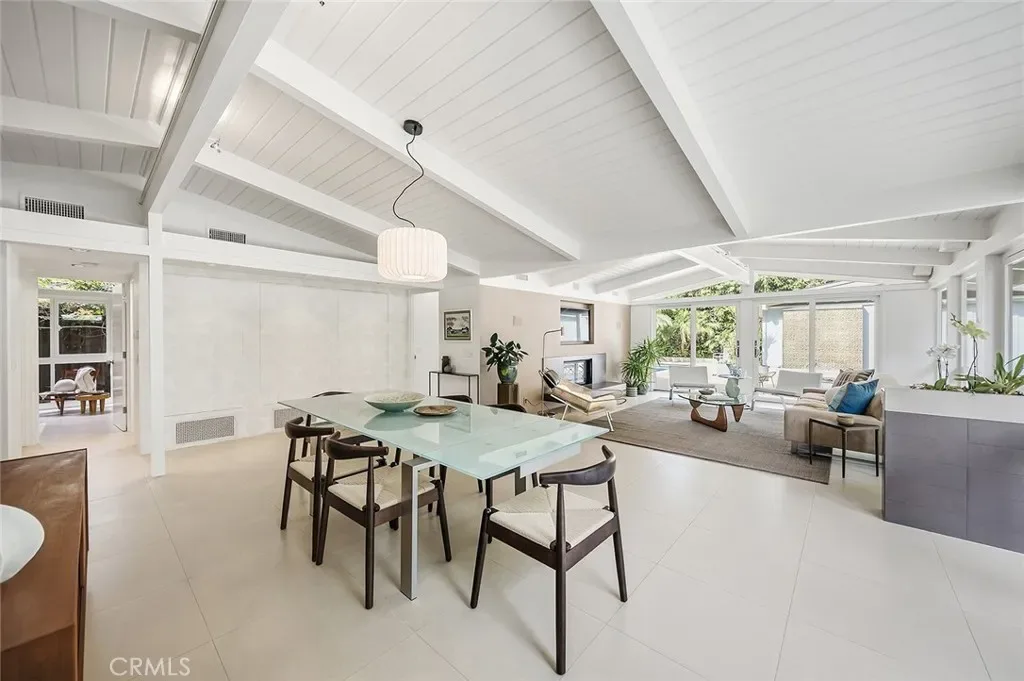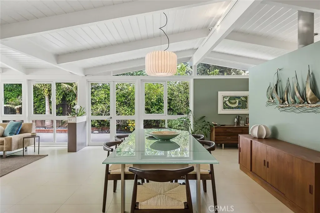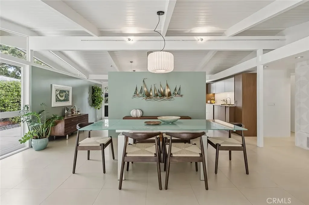 Tucked away in a quiet interior location in the heart of the Rancho Estates, this exceptional Cliff May pool property is an oasis of serenity and modernity. Thoughtfully expanded by the current owners, the residence now spans nearly 1,700 square feet and features a spacious modern kitchen, upgraded bathrooms (with radiant floor heating in the primary bathroom), an enlarged living room with newer fireplace, updated flooring throughout, enhanced HVAC, and numerous additional improvements. The property is beautifully configured for entertainment and relaxation, with a privacy fence along the front of the property with automated driveway gate, abundant outdoor patio space, a detached garage with potential for either car parking or an ADU conversion, a large swimming pool, and lush tropical landscaping. Combining the timeless appeal of Cliff May’s iconic mid-century modern design with expanded living space, functional upgrades, and seamless indoor-outdoor flow, this property presents a rare and exceptional opportunity to experience the very best of Rancho Estates living.