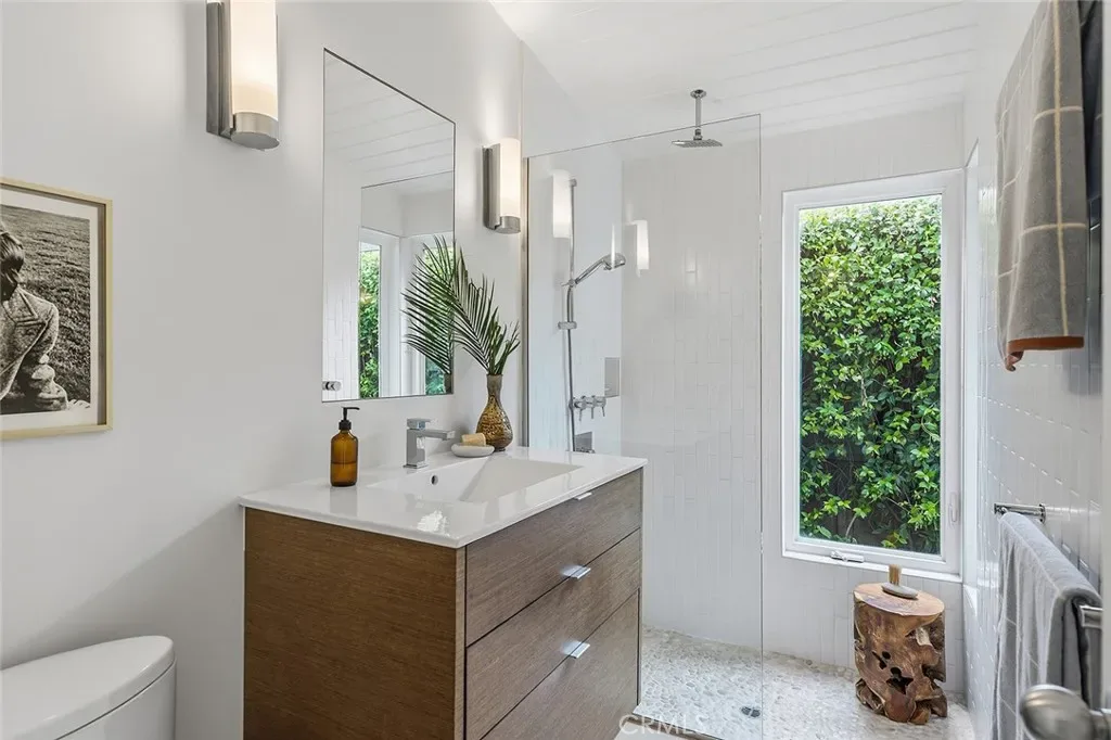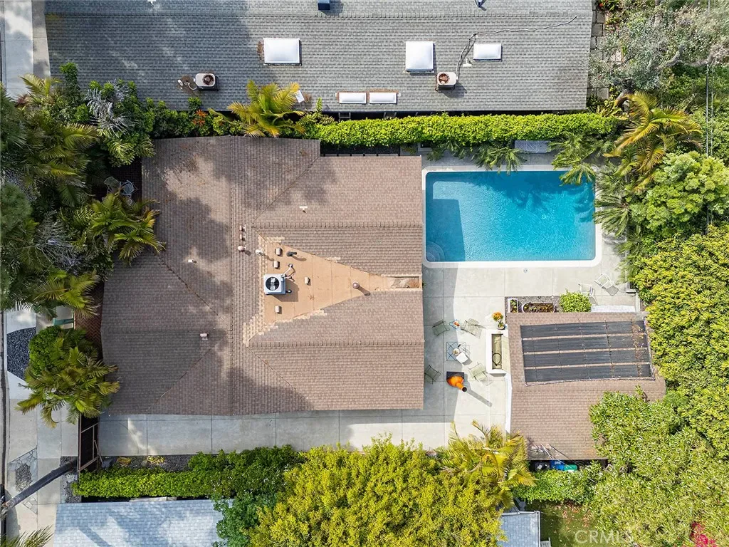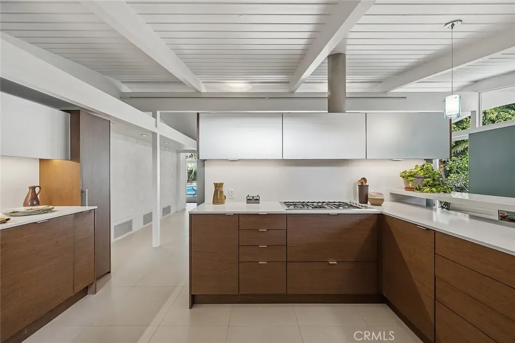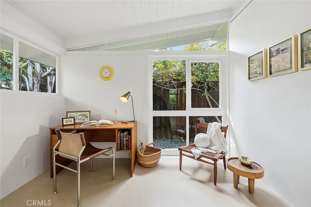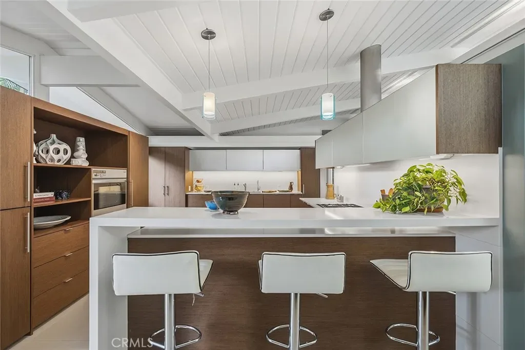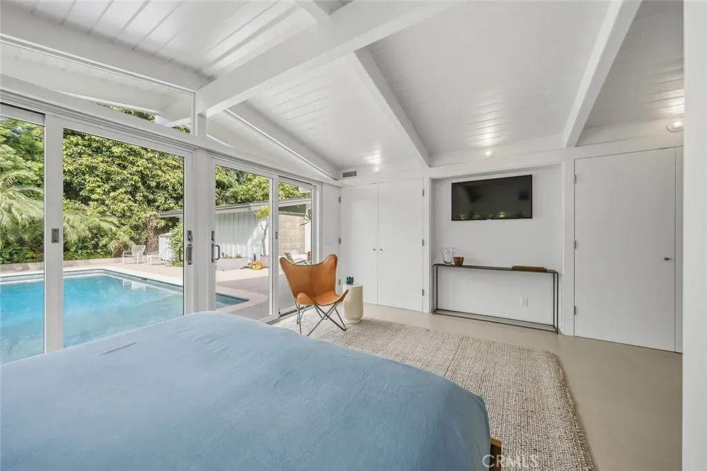 Tucked away in a quiet interior location in the heart of the Rancho Estates, this exceptional Cliff May pool property is an oasis of serenity and modernity. Thoughtfully expanded by the current owners, the residence now spans nearly 1,700 square feet and features a spacious modern kitchen, upgraded bathrooms (with radiant floor heating in the primary bathroom), an enlarged living room with newer fireplace, updated flooring throughout, enhanced HVAC, and numerous additional improvements. The property is beautifully configured for entertainment and relaxation, with a privacy fence along the front of the property with automated driveway gate, abundant outdoor patio space, a detached garage with potential for either car parking or an ADU conversion, a large swimming pool, and lush tropical landscaping. Combining the timeless appeal of Cliff May’s iconic mid-century modern design with expanded living space, functional upgrades, and seamless indoor-outdoor flow, this property presents a rare and exceptional opportunity to experience the very best of Rancho Estates living.