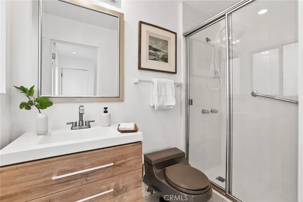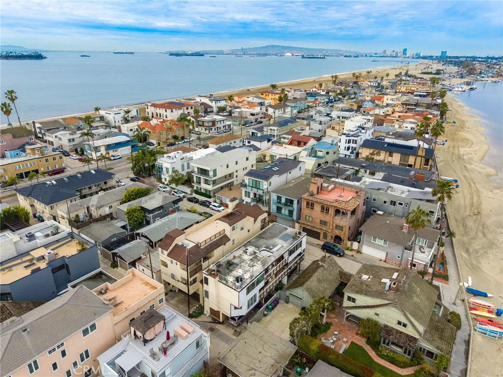 Located just one property from the sand in coveted Alamitos Bay, this rare beachside duplex blends classic mid-century modern design with the relaxed coastal lifestyle that makes this Long Beach enclave so desirable. With clean architectural lines, soaring ceilings, and walls of windows that invite in natural light and ocean breezes, the property offers a unique opportunity for both homeowners and investors. The front residence features two spacious bedrooms and two bathrooms, highlighted by an open living area with a fireplace, dramatic high ceilings, and expansive windows that create a bright and airy atmosphere. A private balcony extends the living space outdoors, perfect for enjoying the coastal air. The second residence offers a versatile one-bedroom plus loft layout with two bathrooms, also showcasing vaulted ceilings, abundant natural light, a fireplace in the living room, and its own balcony retreat. The loft provides additional flexible space ideal for guests, a home office, or creative studio. Both units capture the essence of beach living with indoor-outdoor flow and thoughtful design elements that reflect the building’s timeless mid-century character. A staircase leads to the rooftop access where sweeping views reward you with stunning panoramas of Alamitos Bay, peekaboo ocean views toward the Pacific, and the surrounding coastal neighborhood—an ideal setting for sunset gatherings or quiet mornings by the sea. Parking is well accommodated with carport parking for the front unit, while the rear unit enjoys both a carport and a single-car garage. On the ground level, a separate storage area includes an additional bathroom, offering convenient space for beach gear, hobbies, or future possibilities. Located just steps from the sand, kayaks, paddle boards, and the vibrant waterfront lifestyle of Alamitos Bay, this exceptional duplex delivers the perfect blend of architectural style, location, and versatility in one of Long Beach’s most sought-after coastal communities.