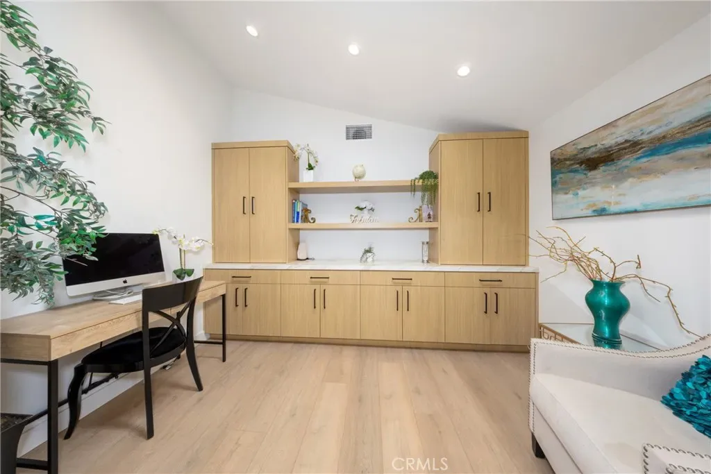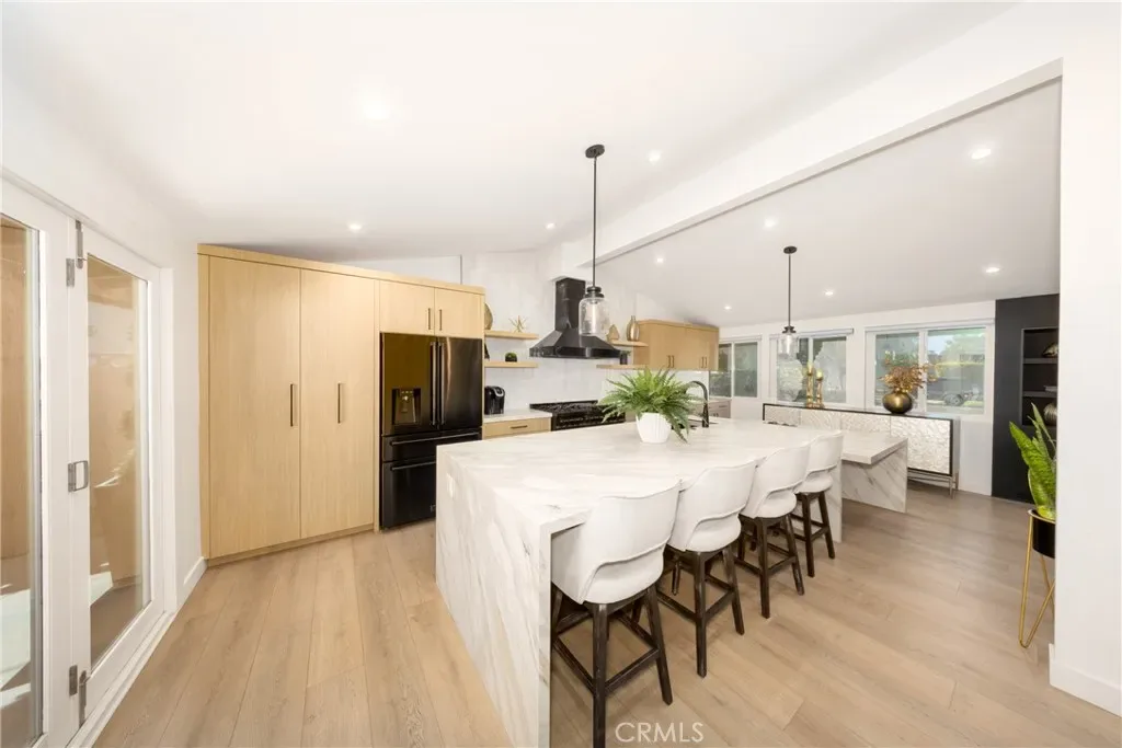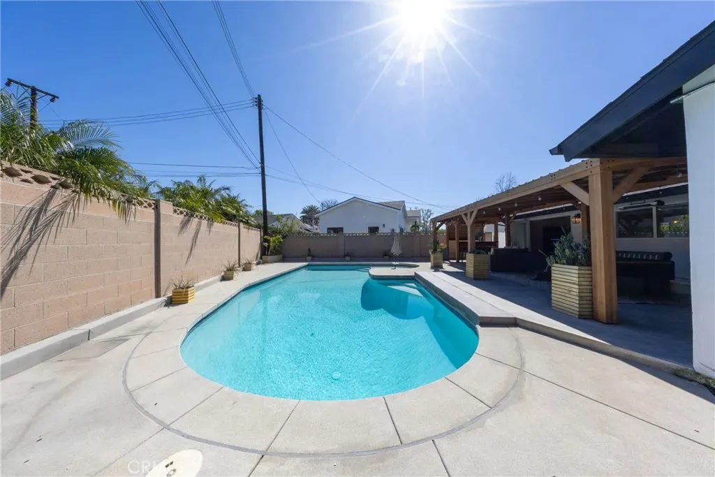 Welcome to Rossmoor, a community in the award-winning Los Alamitos Unified School District with its top-rated schools. This home truly reflects pride of ownership in one of the most sought-after neighborhoods – where community, elegance, and lifestyle come together effortlessly. This completely remodeled residence was designed for those who love to live beautifully and entertain exceptionally. From the moment you enter, you are greeted by an open-concept floor plan that seamlessly blends indoor comfort with outdoor enjoyment. At the heart of the home is a chef’s kitchen, featuring premium ZLINE kitchen luxury appliances, an oversized quarts island, abundant cabinetry, built-in trash and recycling cabinet and pull-out pantry. The home also offers a thoughtfully designed layout, including a spacious primary suite and junior master, ideal for multigenerational living or extended guests. A home office provides flexibility for today’s lifestyle- for running an in-home business or working remotely from home. The backyard is truly your private retreat, where a sparkling heated pool, covered patio with bar area and outdoor heater offer year round entertaining. This is California living at its best -designed for relaxation, celebration and making memories. Additional features included are: 3 full baths, high pressure rainfall shower heads and walk-in showers in primary and junior master, linen closet in primary bath, separate shower & tub in primary bath, electrical fireplaces with color changing flames in living room and primary bedroom, walk-in closet with built-ins in primary bedroom, skylights in office & primary bath, 6 burner gas stove & grill, high ceilings, inside laundry, vinyl flooring throughout, self-closing cabinets with some pull-outs, PAID solar panels, newer roof and electrical panel, extended driveway, EV charger hookups, outdoor shed, storage racks in the garage, sprinkler system, fruit trees (banana & orange trees). Optional security system. What else could you ask for? This home offers the perfect balance of luxury and long-term value.