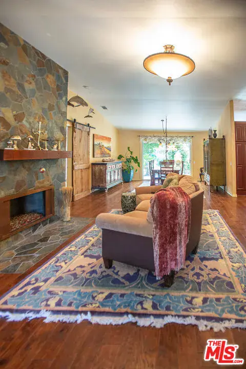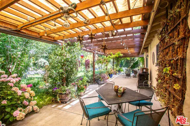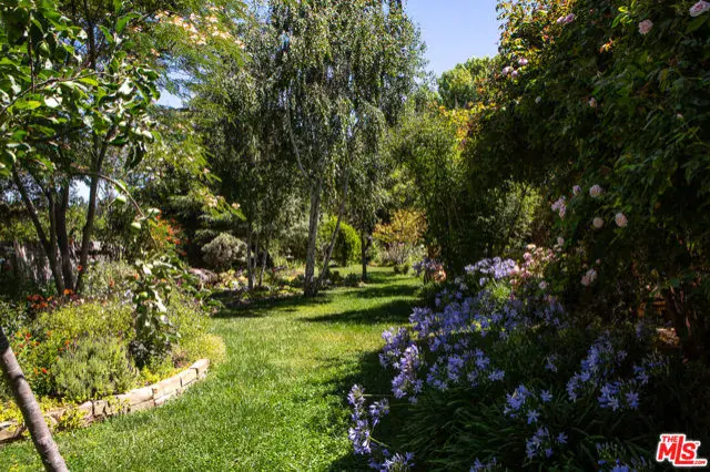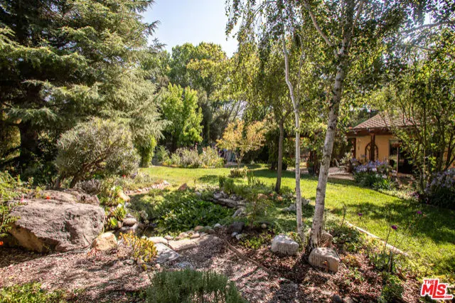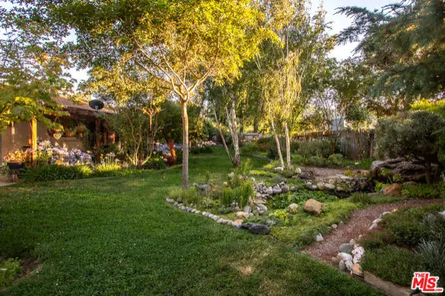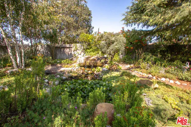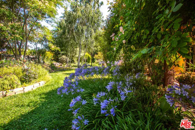 SIGNIFICANT PRICE ADJUSTMENT. A feeling of deep warmth welcomes you to this expansive Central Coast Wine Country property in charming Los Alamos and all it has to offer. Covering nearly acre corner lot, bordering greenbelt that is literally a pine and cypress forest, the sense of place and privacy is remarkable and rare. The grounds are nothing short of your own private park, featuring countless mature trees including two apples, 1 each plum, pear, fig, lemon, lime and Thompson grapes; a waterfall and koi pond, planting beds with artichokes, leeks and asparagus, as well as discrete spots for the both bee keeping and chickens. The entire rear of the house is protected by a full length, covered patio. And then, there is the house with a flow that is a dream for entertaining, one space opening to the next, with most rooms giving onto the stunning gardens, patio and hot tub. All grounded by the richness of hardwood floors throughout. Bedrooms are discretely separated with the primary suite self-contained.The glorious cook’s dream of a kitchen with rich, custom hardwood cabinetry, top quality appliances including a double wine cooler is bookended by the living/dining room with stunning stone gas fireplace and the large lounge/family room. The sum of it all, mindfully created for large scale entertaining or intimate dinners and quiet evenings watching the sunset views. There is a mood to be sure.Lots of room for discrete, off-street and gated parking or storage for your grownup toys, plus the oversized three car attached garage, part of which is currently in use as a second kitchen. Add an ADU and create a unique family compound.