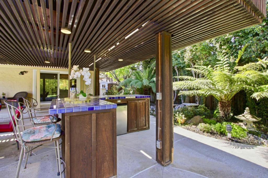 Move right in and enjoy for many years, then update when you desire! Granite kitchen with stainless appliances, gas range with hood, and custom cabinets; New interior paint, refinished hardwood floors, dual pane windows, and tile baths Very well-built home with 3 bedrooms, 2 ½ bathrooms, formal tile entry, large family room, eat-in kitchen, dining area, large living room, quiet master suite, and lots of big windows. Large lot with a big private backyard with surrounding privacy hedge, beautiful new and mature landscaping, an entertainers patio, gardening area, outdoor kitchen, and a well-kept solar heated pool for the kids to learn to swim (a life-long skill) and invite their friends to fun pool parties, summertime events, and after-school gatherings! Prime location to walk to 2 grocery centers, top Los Altos schools, coffee, banks, pharmacies, St. Francis High, the YMCA, a quick drive to Castro St. restaurants and nightlife, and to charming downtown Los Altos with all of its events! Bike to Caltrain, Google, Intuit, Apple, Facebook, Nvidia, and to ALL of the great companies Top Los Altos Schools: Oak Elementary walk across to Blach Middle, and bike to Mountain View High. Do not miss this one!
