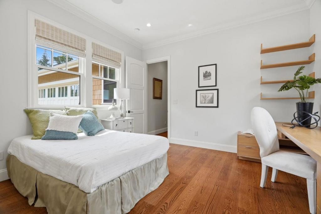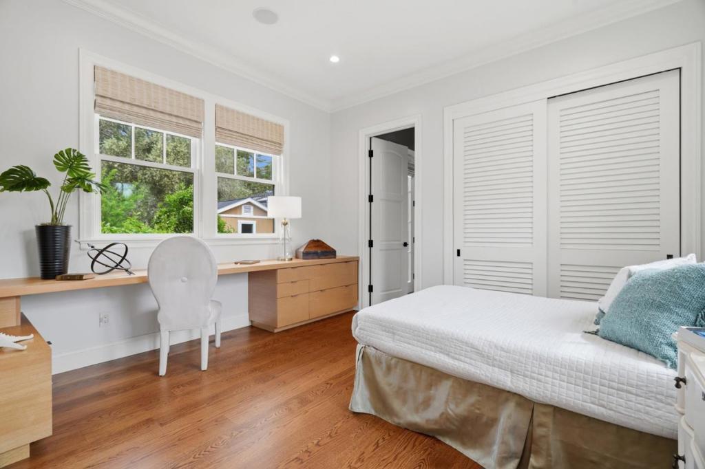 CRAFTSMAN-INSPIRED ESTATE OFFERS CONTEMPORARY ELEGANCE | Situated near two downtown districts, this solar-powered home built in 2014 unfolds as a custom interpretation of Craftsman style amidst the exclusive estates of Central Los Altos. High-end upgrades, smart features, and thoughtful details make this indoor-outdoor design equally elegant, inviting, & functional. Entertain in the sophisticated living/dining ensemble, enjoy the many amenities of the professional-grade kitchen, or gather in a versatile great room that converts to a grand outdoor lounge. All bedrooms are en-suite, including guest quarters and a flexible study on the main level. The primary retreat dazzles with a balcony, auto shades, fireplace, spa bath, & office or dressing room. Immaculate grounds feature a wraparound porch, gardens, veranda with outdoor fireplace, and sprawling low-maintenance grounds including a convenient outbuilding with power plus plenty of space for private recreation & a potential ADU. Additional highlights include owned solar, Control4 home automation, and myriad custom features inside & out. Balancing access with privacy and utmost convenience, this extraordinary home is superbly located near parks, commuter routes, elite tech centers, exclusive academies, and prized Los Altos schools.