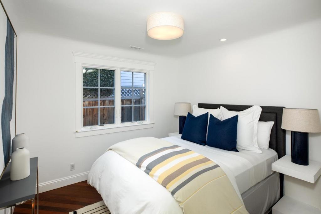 Located on a premier street in sought-after Old Los Altos, this beautifully updated 3-bedroom, 2-bath home offers bright, single-level living with timeless appeal. Freshly painted interiors and refinished hardwood floors create cohesive aesthetic, while tray ceilings, crown moldings, and skylights add architectural character throughout. Formal living and dining rooms are complemented by a well-appointed kitchen with granite slab counters, stainless steel appliances, and island seating. The spacious primary suite opens to the rear yard and features a travertine bath with new freestanding tub and separate shower. Two additional bedrooms provide flexibility for guests or office needs. A charming rear yard and detached oversized garage with rear alley access complete this exceptional offering just blocks from downtown Los Altos and top-rated schools.