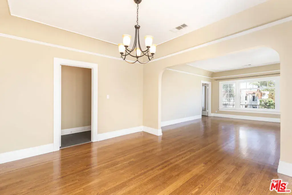 This lovely and character-rich unit in a classic Mid-Wilshire 4-plex is ready to welcome you home. Restored honey-toned hardwood floors, fresh designer paint, statement fixtures, and soaring ceilings with vintage arches set the tone the moment you walk inwarm, inviting, and full of good energy.The spacious living room features a decorative fireplace and a bright nook or den space– perfect for a home office or reading corner with a view. There’s plenty of room to stretch out, settle in, and truly make the space your own.The kitchen is both beautiful and functional, featuring sleek granite countertops, stainless steel appliances, and a charming farmhouse feel that sparkles from top to bottom. A separate dining room offers ample space for hosting, dinner parties, or slow morning coffees. Both bedrooms are generously sized with surprisingly ample closet spaceespecially rare for a 1920s building.With central air and heat plus an in-unit washer and dryer, this home checks all the modern comfort boxes while preserving its original charm.Set in a vibrant pocket of Mid-Wilshire near the Miracle Mile, you’re moments from Little Ethiopia, LACMA, local cafs, yoga studios, and boutique shoppingand less than 10 minutes to The Grove.