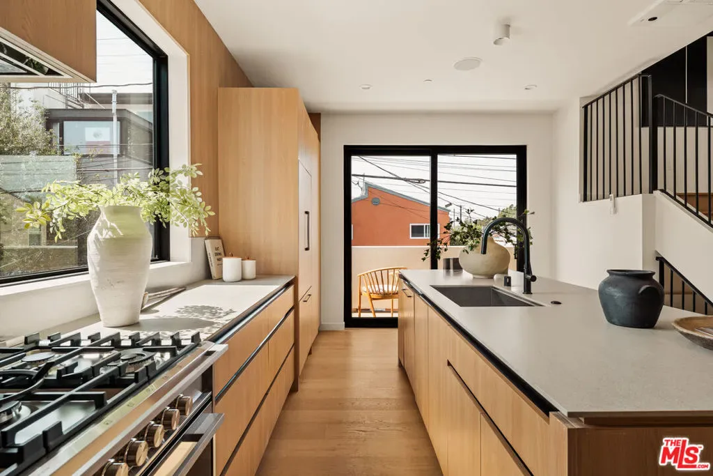 Introducing three newly built townhomes in the vibrant heart of Mid-City – each thoughtfully crafted with a refined design sensibility and an eye for modern luxury. Every residence showcases bespoke finishes and architectural details, including custom lighting, wood-paneled accent walls, and Roman clay plaster accents that provide warmth and sophistication throughout. Unit C boasts a private entry foyer, leading directly to a lower-level en-suite guest bedroom with sliding doors opening to a private backyard – the ideal space to entertain and host. The main level is designed for everyday comfort and living, featuring an expansive living area with an abundance of natural light, a chef’s kitchen with stainless steel appliances, an oversized island with breakfast bar, and sliding doors that open to a private outdoor patio. Upgrades throughout include custom cabinetry, white-oak wall paneling and roman clay accents. Upstairs, the primary suite serves as a tranquil retreat, complete with a spa-inspired ensuite bathroom featuring dual vanities, a stunning walk-in shower, and a custom-built walk-in wardrobe. Two additional guest bedrooms are equipped with sumptuous en-suites and provide ample space for family or guests. The top-level boasts sliding doors that lead to an expansive, covered rooftop terrace, offering sweeping panoramic views of Downtown Los Angeles, the Hollywood Hills, and beyond – an unbeatable backdrop for entertaining or relaxing. These residences embody elevated Mid City living – where thoughtful design, high-end finishes, and breathtaking views come together seamlessly.