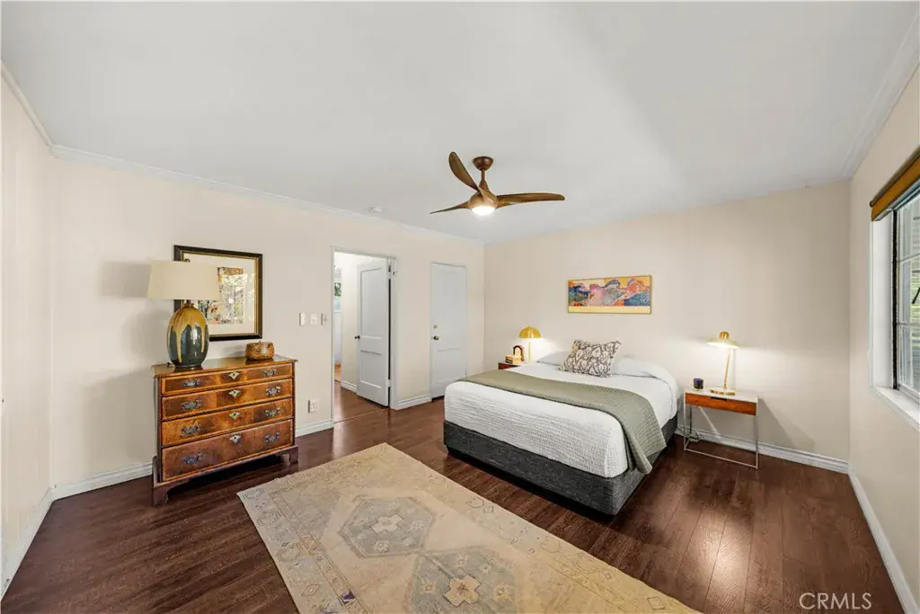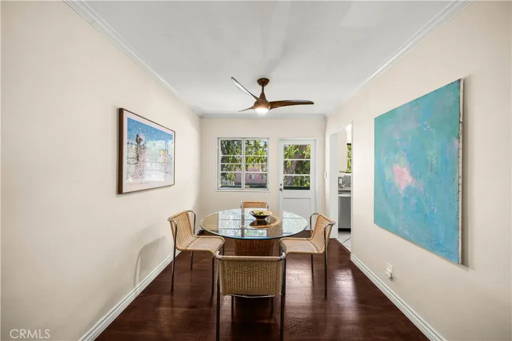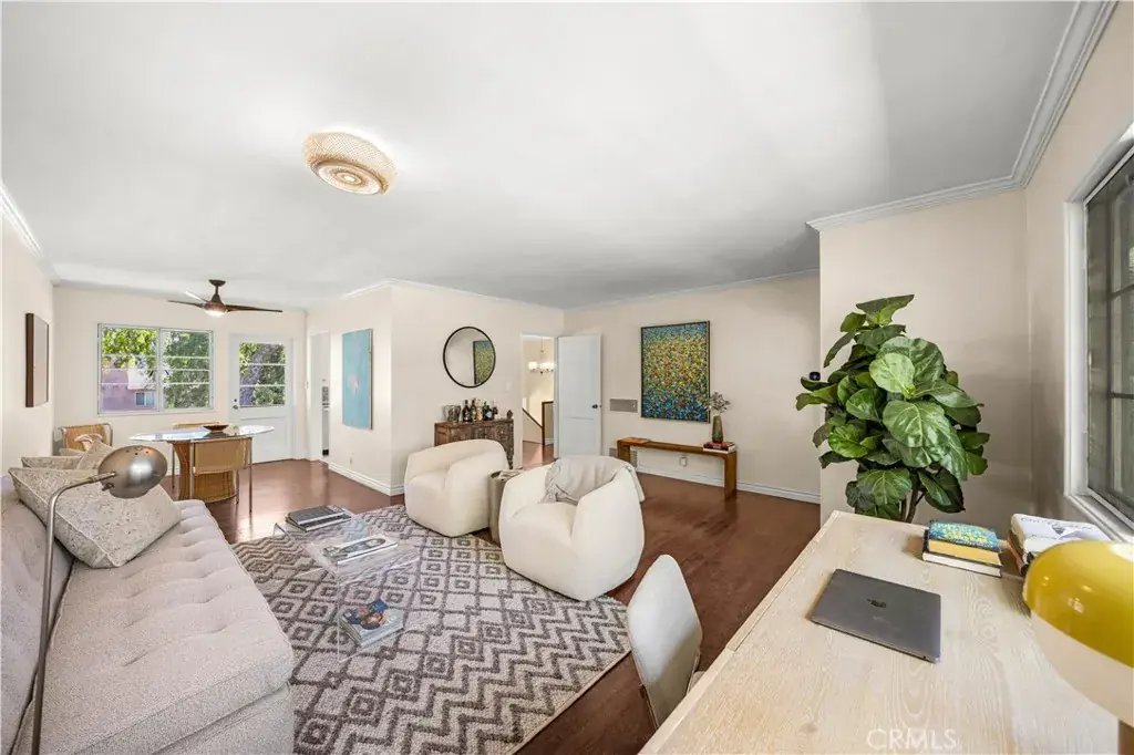 Located in Village Green on the Westside of Los Angeles near Culver City, this light-filled one-bedroom, one-bath residence features a private street-level entrance with a patio approach. The layout includes two balconies providing natural light and cross ventilation. Interior features include in-unit laundry, automated window coverings, a dishwasher, and an automatic garage door. One detached garage space is included.