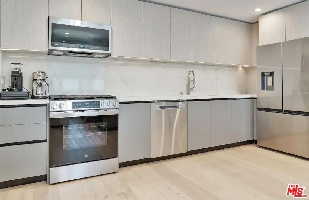 Experience refined Beverly Grove living in this brand new construction residence, ideally situated on 4th Street between Sweetzer and La Jolla. This newly constructed upper level 2 bedroom 2 bathroom unit offers open layout and luxury with only one unit below. Be the first to live in this residence featuring modern finishes, custom kitchen cabinetry and counter tops, stainless steel appliances, recessed lighting, custom silhouette window treatments and much more. Both bedrooms are generously sized and complemented by spa inspired bathrooms and sleek fixtures. Generous living room space and individual split A/C systems provide personalized climate control in each room. This unit is set in a rear building with a secured gated entry which enhances privacy and security and has 1 parking space right in front of the unit. Ideally located in the heart of Beverly Grove, just steps from The Grove, Beverly Center, Trader Joe’s, Whole Foods Market, Farmers Market, and many of Los Angeles’ sought after dining places including Katsuya, Little Door and Joan’s on Third. Close to Cedars-Sinai. Set on a quiet, permit-only street with ample street parking, this residence offers a blend of luxury and walkability in one of LA’s most desirable neighborhoods.