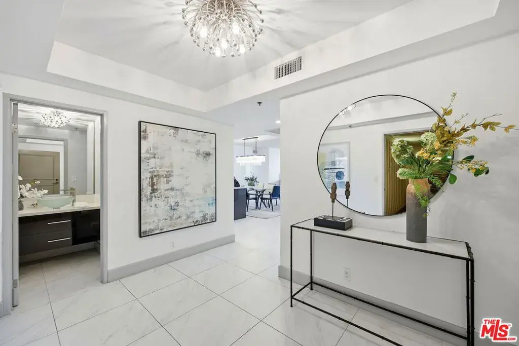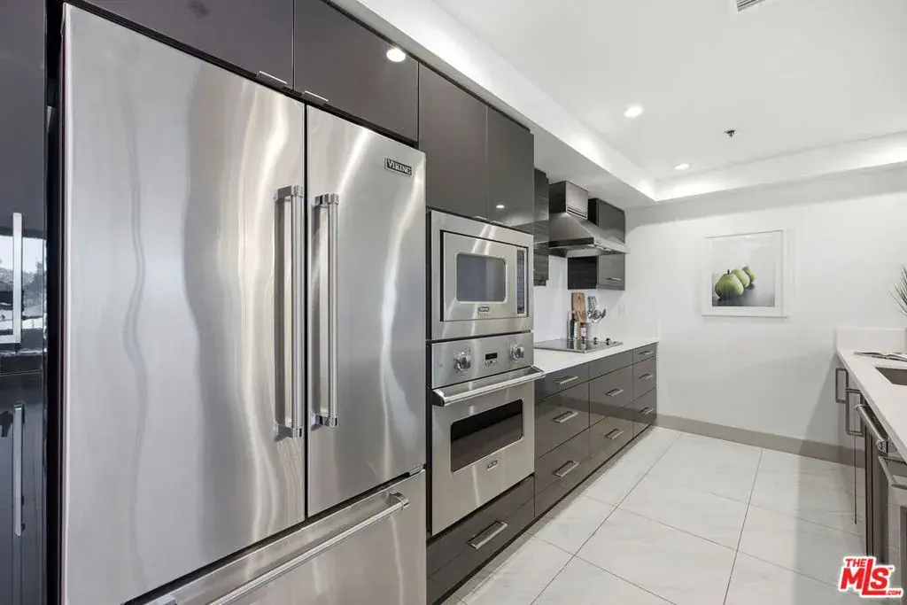 Exceptional Opportunity!!! Discover a sleek and chic, meticulously remodeled 2 bedroom, 2.5 bathroom condominium located in the Wilshire Manning, a full-service high-rise on the Wilshire Corridor. The residence features a formal entry leading into light-filled spacious living and dining areas. White porcelain floor tiles extend throughout the main living spaces, creating a bright and airy atmosphere. Floor-to-ceiling double sliding glass doors enhance natural light and showcase picturesque city and mountain views, while built-in custom cabinetry equipped with a wine fridge adds both style and functionality. The open-concept kitchen is outfitted with top-of-the-line Viking appliances and stylish, high-end cabinetry. A sizeable quartzite central island serves as the focal point, ideal for effortless entertaining and culinary creativity. The spacious primary bedroom features elegant wood flooring, double layered windows for shielding sound, revealing Ocean and City views. A large walk-in closet completes the personal retreat. The spa-inspired primary bathroom showcases a walk-in shower, concrete walls, and a double vanity, all embodying a clean, modern aesthetic. The secondary ensuite bedroom also features wood flooring, double layered window unveiling Ocean and City views, a walk-in closet and a full bath, ensuring comfort and privacy for guests or family. A side-by-side washer and dryer are conveniently situated in the hallway, away from the kitchen for optimal functionality. Residence includes two separate parking spaces, with one equipped with its OWN EV CHARGER for electric vehicles. Building amenities include 24-hour security and valet parking, an elegant lobby, fitness center, pool, and a conference room for residents. This home is move-in ready and offers a neutral palette, making it easy to personalize and create an ideal environment. Building is conveniently located close to 405 freeway, UCLA, Westwood, Century City and Beverly Hills…moments away from best shopping, dining and entertaining destinations.