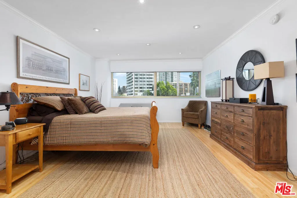 Located in the iconic Crown Towers, Residence #503 presents an exceptional opportunity to own in a premier full-service building at an attractive price point. This desirable corner unit offers sweeping city vistas stretching across Century City and Holmby Hills. The well-proportioned layout includes two bedrooms and two bathrooms with an open living and dining area filled with natural light and access to a spacious private balcony.The home offers a wonderful canvas to customize while already featuring thoughtful upgrades such as bamboo flooring, recessed lighting, dual-pane windows, and an updated kitchen appointed with quartz countertops, stainless steel appliances, and a convenient breakfast bar. The generously sized primary suite provides a relaxing retreat with two closets, including a walk-in, along with a private en-suite bathroom.Residents enjoy an array of full-service amenities including 24-hour valet and concierge, professional on-site management, a pool, fitness center, sauna, and a comfortable residents’ lounge. HOA dues cover water, trash, building insurance, and cable TV with HD/DVR. Ideally situated just moments from Westwood Village, University of California, Los Angeles, Century City, and Beverly Hills, this is a fantastic chance to create your ideal home in one of Los Angeles’ most desirable locations.