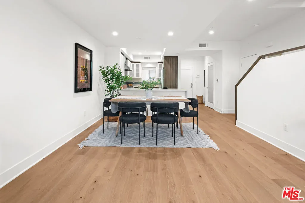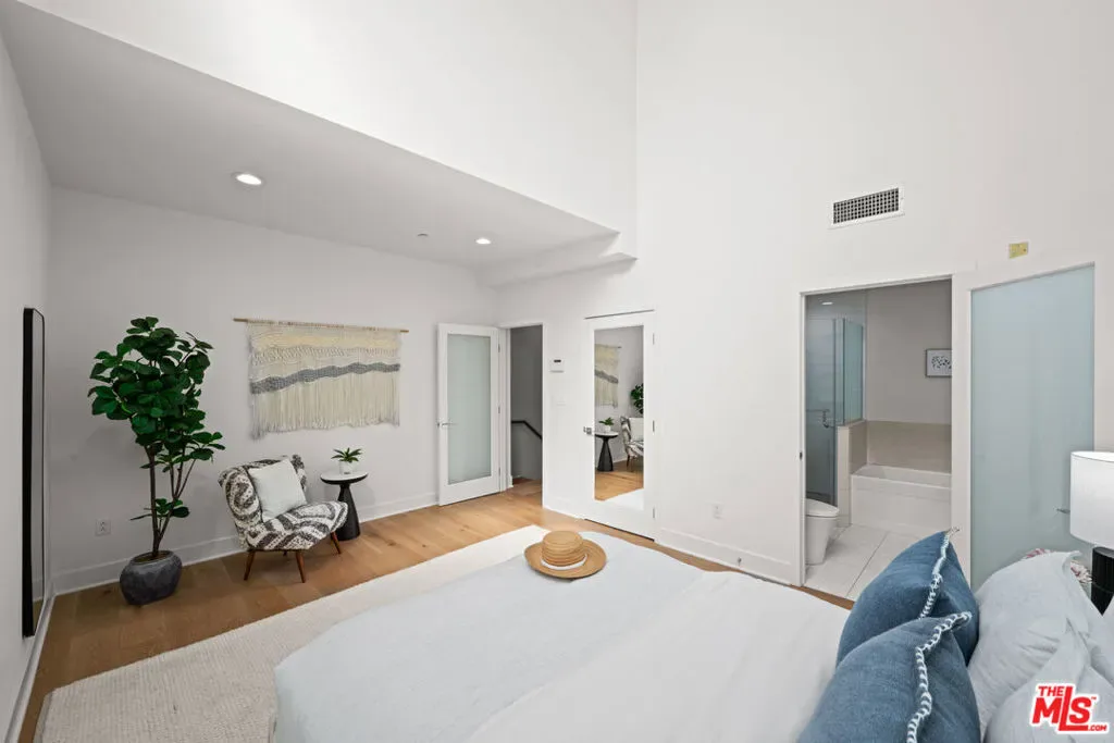 Contemporary townhouse built in 2011, located in an intimate 6-unit building in the heart of Beverly Grove an unbeatable location with a Walk Score of 94. This home is truly a neighborhood gem, offering modern luxury, high-end amenities, and timeless charm. This 3BR + office, 2.5BA residence has it all: a sleek modern kitchen with Viking range and quartz stone counters, an open floor plan with wide-plank white oak floors, and a cozy bar/den area perfect for entertaining. The primary suite features dramatic 20-foot ceilings and an en-suite bathroom with dual sinks, separate soaking tub, and shower. Two additional bedrooms are conveniently located on the same level, along with a second full bath and washer/dryer. Upstairs, a loft/office leads to an expansive 600+ sq ft private rooftop deck equipped with custom lighting, sound system, upgraded flooring, BBQ, fridge, dining area, gas firepit, outdoor movie theater with high-definition projector, plus incredible views of the Hollywood Hills (unlike other units in the building). The home has been recently finely remodeled with new hardwood floors replacing prior carpet and energy-efficient LED lighting throughout. Set in a highly walkable neighborhood, you can enjoy shopping, dining, errands, local parks, and vibrant cafes all just seconds away. Friendly neighbors and a strong community vibe make this home not just beautiful, but truly welcoming. Don’t miss this exceptional opportunity to experience modern comfort, style, and convenience in one of LA’s most desirable locations.