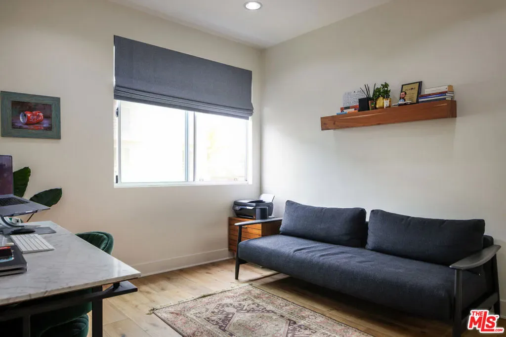 DIALED IN TURNKEY TOWNHOUSE OFF VIBRANT 3RD STREET. This impeccably designed townhouse in prime Beverly Grove offers the convenience of upscale boutiques, trendy eateries, and seamless transport options just steps away. The residence features three bedrooms and two and a half baths, a modern kitchen equipped with top-of-the-line Viking appliances, quartz stone countertops, and an airy open floor plan with wide plank oak floors. The luxurious primary suite boasts soaring 20-foot ceilings and a spa-like en-suite bathroom with a dual sink vanity, separate tub, and shower. Two additional bedrooms, a well-appointed bath, and a strategically placed washer and dryer complete this floor. Ascend to the upper level to find a loft/office space leading to a spacious 600-square-foot rooftop deck, perfect for indoor-outdoor living and entertaining. Additional highlights include two tandem parking spaces with guest parking and Nest thermostat-controlled central A/C.Enjoy close proximity to some of Los Angeles’ best destinations, including The Grove, Joan’s on 3rd, La La Land, Bacio Di Latte, and more. A rare opportunity to experience luxury townhouse living at its finest.