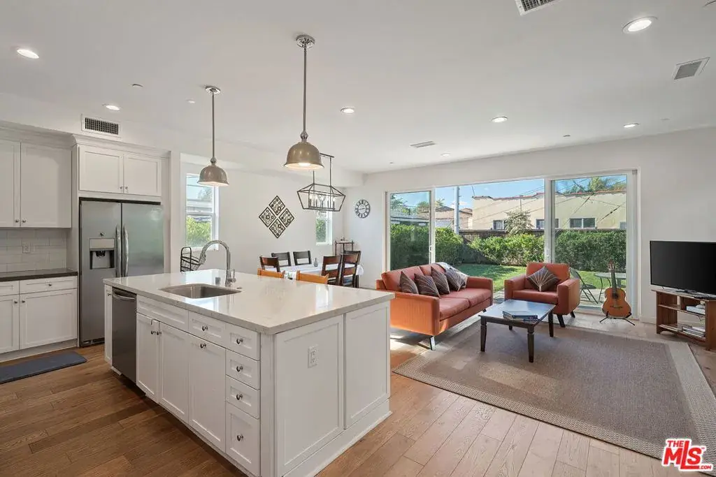 For Lease at 10833 Tabor Street in the highly desirable Palms neighborhood of Los Angeles, this light-filled 4-bedroom, 3-bathroom home offers modern comfort, functional design, and an unbeatable Westside location. The airy main level features beautiful wood floors that lead into an expansive great room with a large sliding glass door opening to the backyard, creating seamless indoor-outdoor California living. The living room is anchored by a cozy gas fireplace, while the dining area flows effortlessly into the gourmet kitchen complete with quartz countertops, a spacious seated island, and a full suite of stainless steel appliances — ideal for both everyday living and entertaining. Thoughtfully designed, the home includes a bedroom suite on the main level ideal for guests, a home office, or playroom, while the remaining three bedrooms are upstairs. The impressive primary suite offers a generous walk-in closet and a spa-inspired en suite bathroom with dual vanities, a soaking tub, and a glass-enclosed tiled shower. The fenced backyard provides ample space to lounge, play, or dine alfresco in the California sunshine. Additional features include a dedicated laundry room and an attached 2-car garage with direct access into the home. Set on a quiet, tree-lined street near the neighborhood’s best restaurants, shops, and amenities, with convenient access to the 405 and 10 freeways, this beautifully appointed home delivers the space, layout, and location you’ve been searching for.