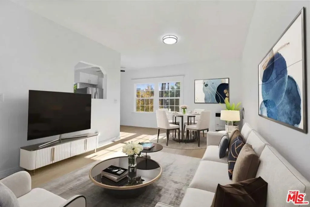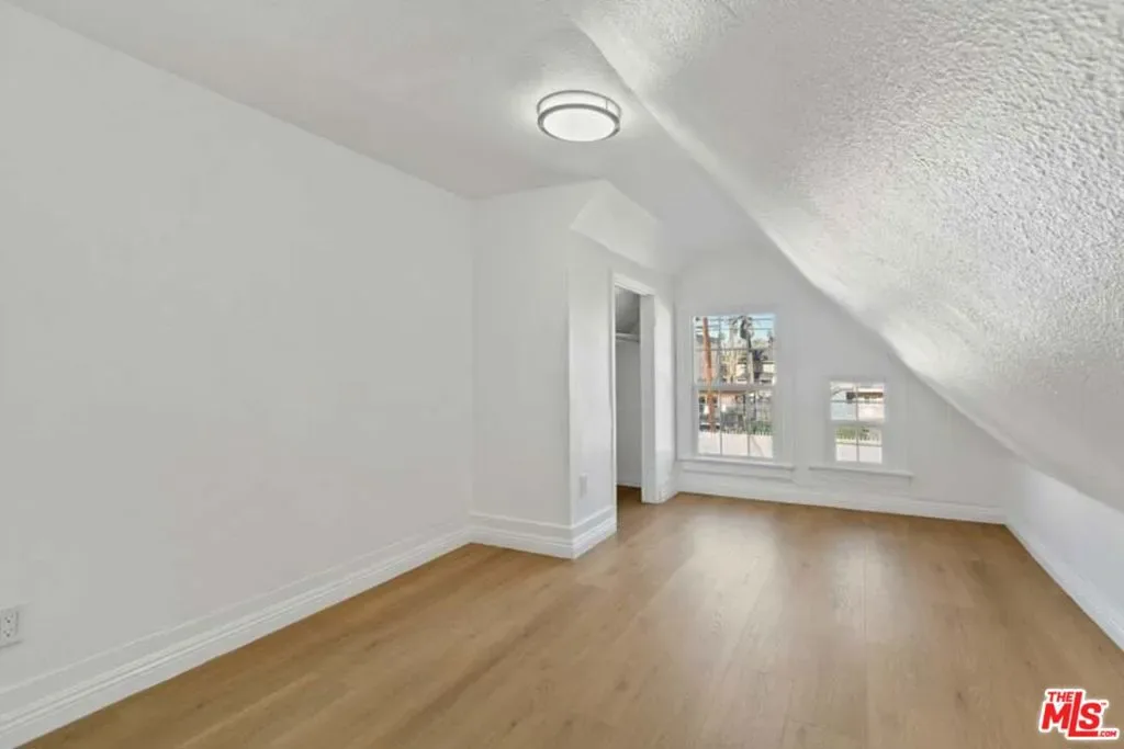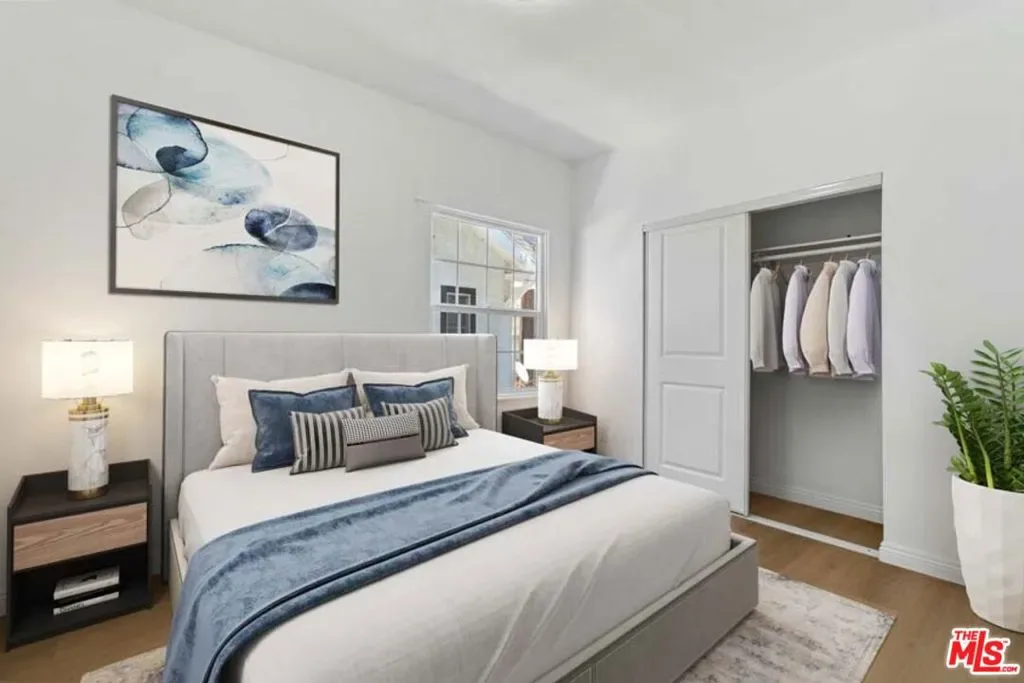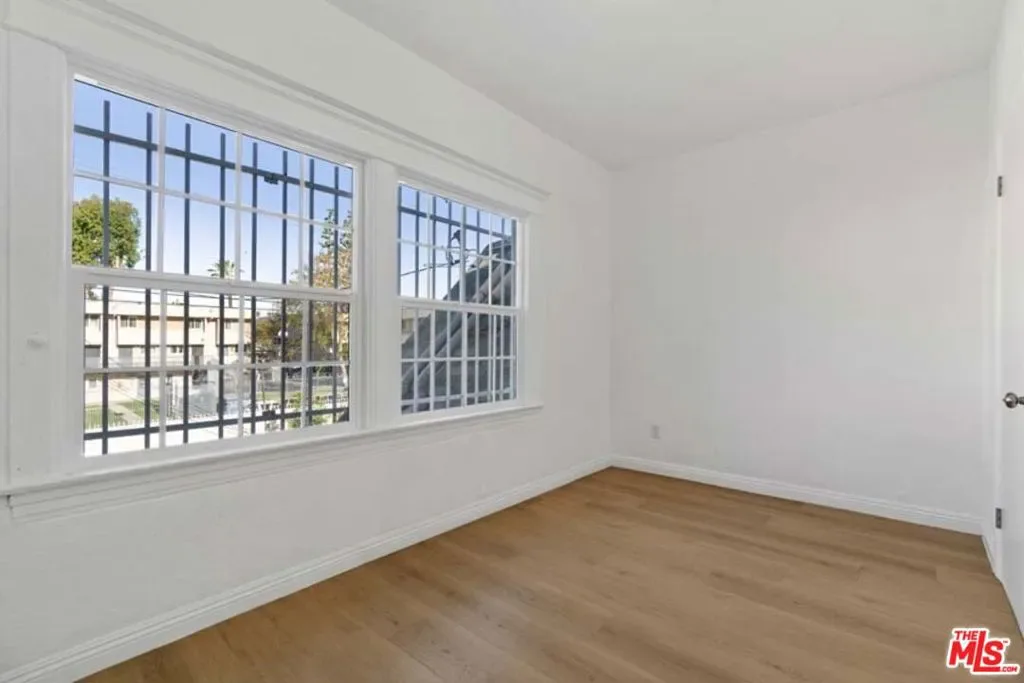 Completely Remodeled 3BD/1BA Bright Upper Unit with 2 Parking Spaces & Security! Ideally situated between 11th St and 12th St in a quiet, low-traffic neighborhood (15 mph residential zone). This second-floor unit features an abundance of natural light with an east-facing orientation and pleasant views. The unit has been fully renovated with brand-new upgrades throughout, including brand new modern kitchen appliances with new cabinets including pantry, granite countertop, refrigerator, microwave, and gas stove, waterproof flooring throughout, new dual-pane windows, and fresh interior paint. The property sits on a large 8,570 sq ft lot and offers excellent amenities: 2 parking spaces included, gated entry with automatic gate, CCTV security system, and additional guest parking available. Just minutes from DTLA, Hancock Park, and Larchmont Village, this property offers easy access to dining, shopping, and public transportation. The convenient location puts you close to Downtown Los Angeles, USC, LA Live, many restaurants and shops, and within easy reach of public transit and freeways. Available for immediate move-in. Don’t miss your chance to live in one of L.A.’s most vibrant and central neighborhoods! Virtual staging photos showcase the kitchen, living room, and primary bedroom.