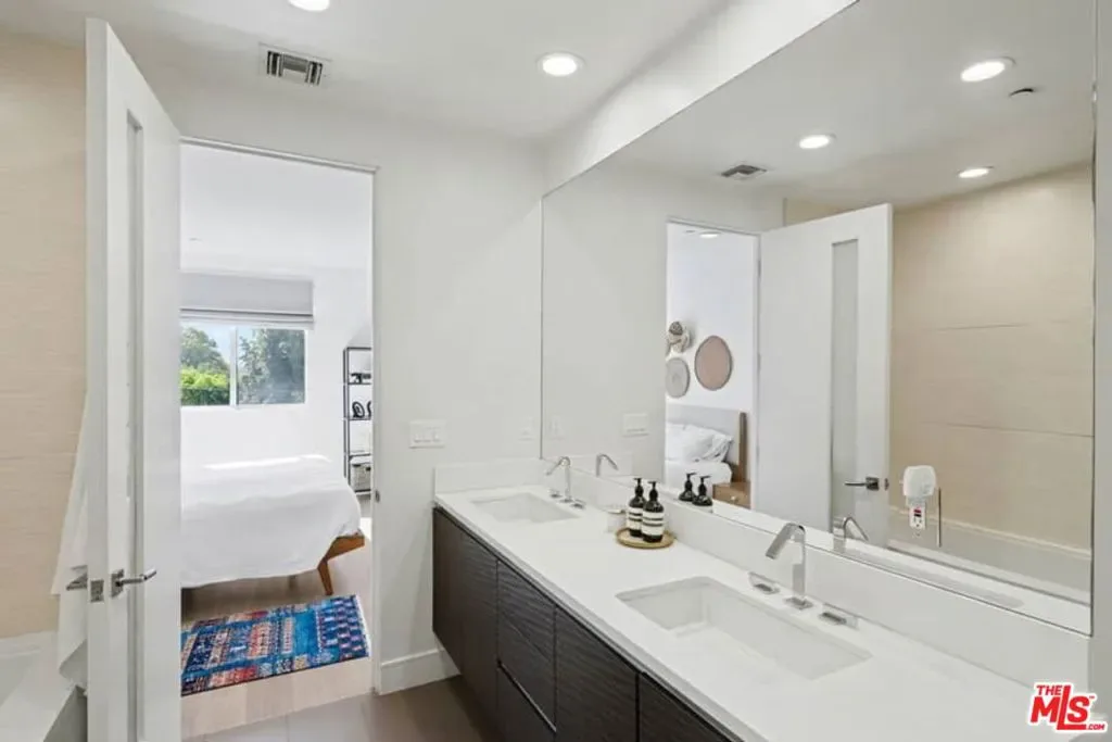 Rare Find in Mar Vista | National Modern Living Discover this exceptional opportunity in the highly sought-after National Modern Living community – a private collection of just 18 light-filled and forward-thinking townhomes. Located in the heart of Mar Vista, the home offers outstanding walkability to groceries, shopping, top-rated restaurants, and coffee shops. Positioned in the rear of the building, the residence provides added privacy, tranquility and peaceful living. Inside, enjoy two spacious bedrooms, each with its own en-suite bath, plus a generous family room featuring a fireplace and dramatic high ceilings. The gourmet, high-end kitchen opens seamlessly to the living and dining areas, creating an effortless flow perfect for entertaining and everyday living. Step outside onto your private patio, ideal for enjoying Southern California year-round. Smart home features include multi-zoned Nest thermostats, a Yale smart lock for keyless entry, and Google doorbell for enhanced security and convenience. Residents enjoy premium building amenities, including secure underground gated parking with two assigned spaces complete with personal EV charging, a clean and well-lit lobby entrance from the garage, a fully equipped fitness center, and large secure personal storage for each unit. Proudly located in the acclaimed Mar Vista Elementary School District, this modern gem delivers the perfect blend of luxury, convenience, and community.