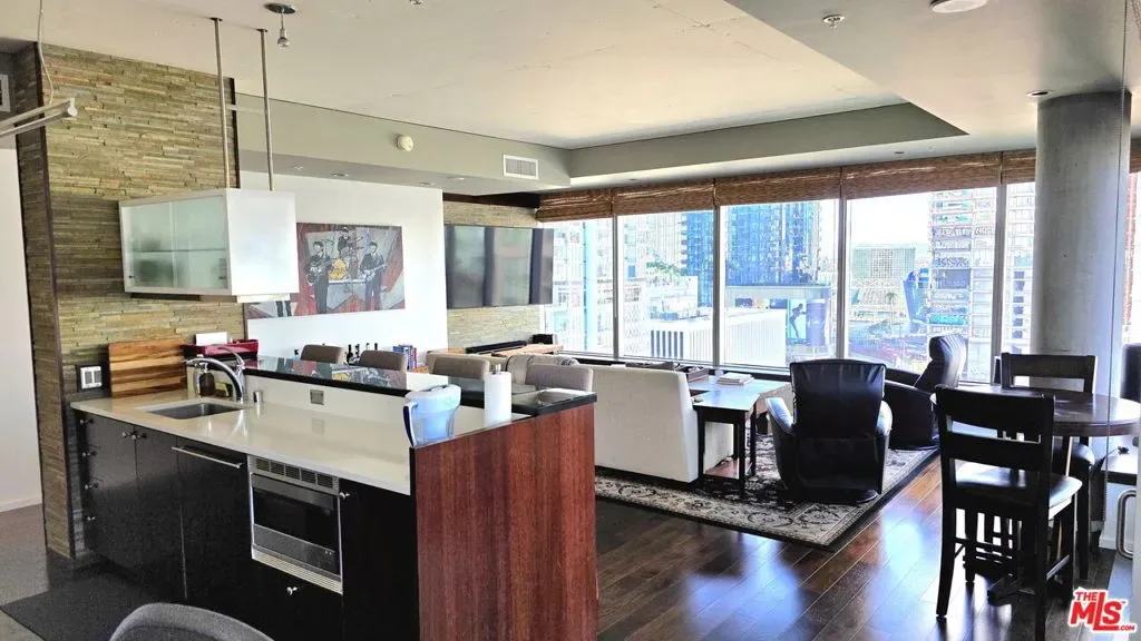 Evo Unit 1116 is a Gorgeous Light Bright and Airy Large 1 bedroom and 2 bath condo unit with 1400 sq ft of living space. This NORTHWEST CORNER unit with City Views has a good size balcony overlooking the infinity pool and sundeck. Thanks to the walls of glass encompassing this beautiful unit an abundant natural light overfill this lovely condo and at the same time seamlessly integrates the city views into the living experience. Enjoy a sunny breakfast or a candlelight al fresco dinner on the spacious balcony a great place to entertain or relax at the end of a busy day. The spacious functional open floor plan affords flexibility for a live work home office or extra living space. Tenants will enjoy the resort like amenities including a roof top exercise room with city views a modern sky lounge with mini kitchen for small family gatherings and special events available by reservation a roof top outdoor patio with fireplace overlooking LA skyline view an infinity pool spa and sundeck a BBQ area with kitchen and a 24 hour front desk person. Just minutes from Crypto Arena Peacock Theater Starbucks Whole Foods Ralphs and Expo line. Hi speed internet water sewer trash included. Tenant pays electricity.