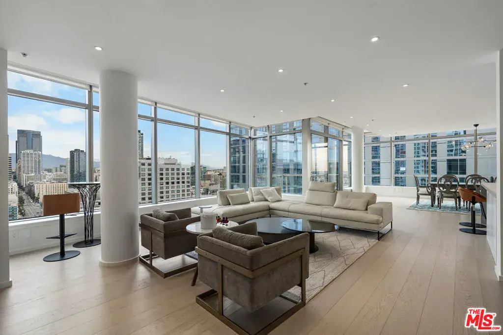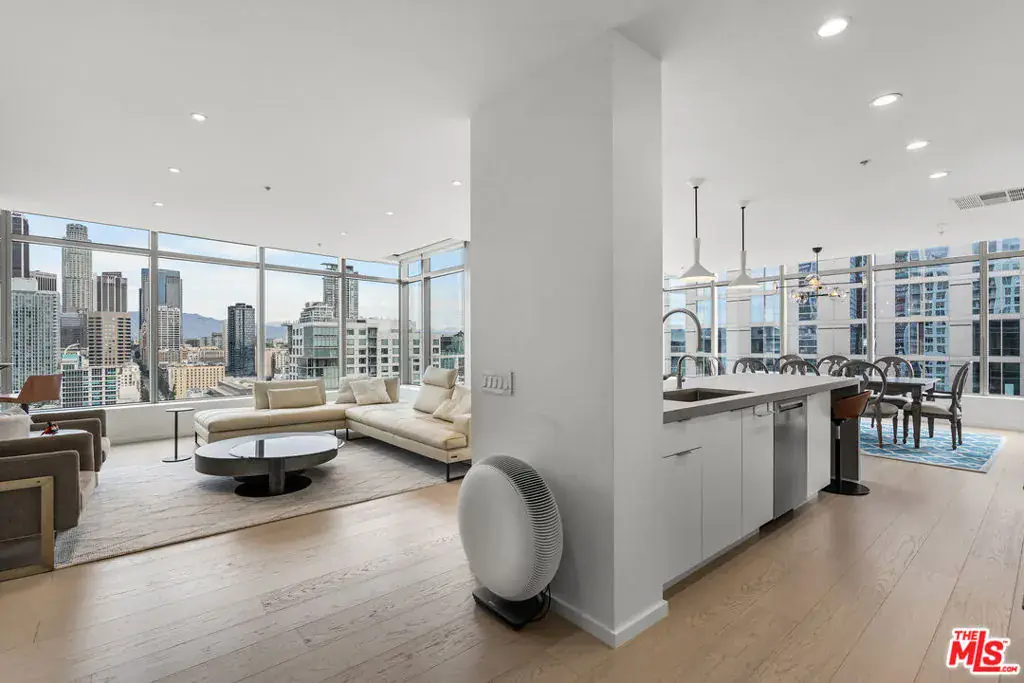 Welcome to this stunning, fully upgraded unit featuring VIEW! VIEW! VIEW! offering breathtaking panoramic scenery from the comfort of your home. This beautifully maintained residence has undergone approximately $300,000 in high-end interior upgrades, showcasing modern finishes and refined details throughout. Experience elevated urban living at EVO, one of South Park’s most iconic and sought-after modern high-rise communities. Completed in 2008 and LEED Silver certified, EVO is known for its sleek glass-and-steel architecture, contemporary design, and resort-style amenities that redefine Downtown Los Angeles living. Residents enjoy a stunning 6th-floor sun deck featuring a pool, spa, outdoor kitchen, lounge areas, and fireplace, along with the sophisticated rooftop resident lounge on the 24th floor, offering panoramic skyline views. Additional amenities include a state-of-the-art fitness center, 24-hour security, concierge services, and secured gated parking delivering both luxury and convenience in a full-service building. This rare northeast-facing corner residence offers breathtaking, unobstructed Downtown skyline views and is filled with natural light throughout the day. Expansive floor-to-ceiling windows and soaring approximately 11-foot ceilings create a dramatic sense of openness and volume, enhancing the airy, loft-style ambiance. The highly desirable corner orientation provides both privacy and dynamic city views from multiple vantage points. Fully remodeled within the past two years, this residence has been thoughtfully upgraded with high-end designer finishes, renowned luxury brand materials, and eco-friendly improvements. The modern kitchen features premium appliances and refined detailing, seamlessly blending functionality with style. Carefully selected finishes throughout the home create a sophisticated yet warm atmosphere, offering a perfect balance of contemporary elegance and everyday comfort. Move-in ready and impeccably maintained, this turnkey home presents a rare opportunity to own a fully upgraded corner unit in one of Downtown LA’s premier lifestyle buildings ideal for those seeking design, views, and elevated city living all