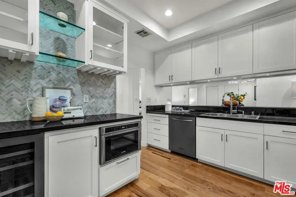 Welcome to this beautifully remodeled condo in one of Brentwood’s most desirable locations, boasting a 90 Walk Score to some of the area’s best restaurants, cafe’s, and markets. Warm, inviting & thoughtfully designed, this home offers gleaming wood floors, recessed lighting, stylish built-ins, & an easy, natural flow throughout. The bright lanai, converted from the original balcony & incorporated into the square footage, creates a lovely bonus living space. Perfect for morning coffee, a home office nook, or winding down at the end of the day. Entertain effortlessly from the breakfast bar, wet bar in kitchen or dedicated dining area. The open chef’s kitchen features a 4-burner cooktop, double ovens, granite countertops, stainless steel appliances, wine fridge & ample cabinetry. The layout offers 2 bedroom suites positioned on opposite sides of the unit for optimal privacy. Each bathroom has been beautifully upgraded with floating double vanities, & custom tile. The spacious primary suite opens seamlessly to the lanai & its bathroom features a spa-like bath with a soaking tub, separate shower & generous closet space. Just off the kitchen is your own enclosed laundry room with extra storage. Additional upgrades include a new HVAC system (Fall 2025) & newer water heater, washer/dryer, & refrigerator. The well-run complex offers a newly updated gym with paid Tonal subscription with doors that open directly to the pool for a resort-style workout experience. The elevator received a new operating system in 2023. Two-car covered parking, 6 guest spaces, a large on-site storage unit & a bike room complete this lovely new home.