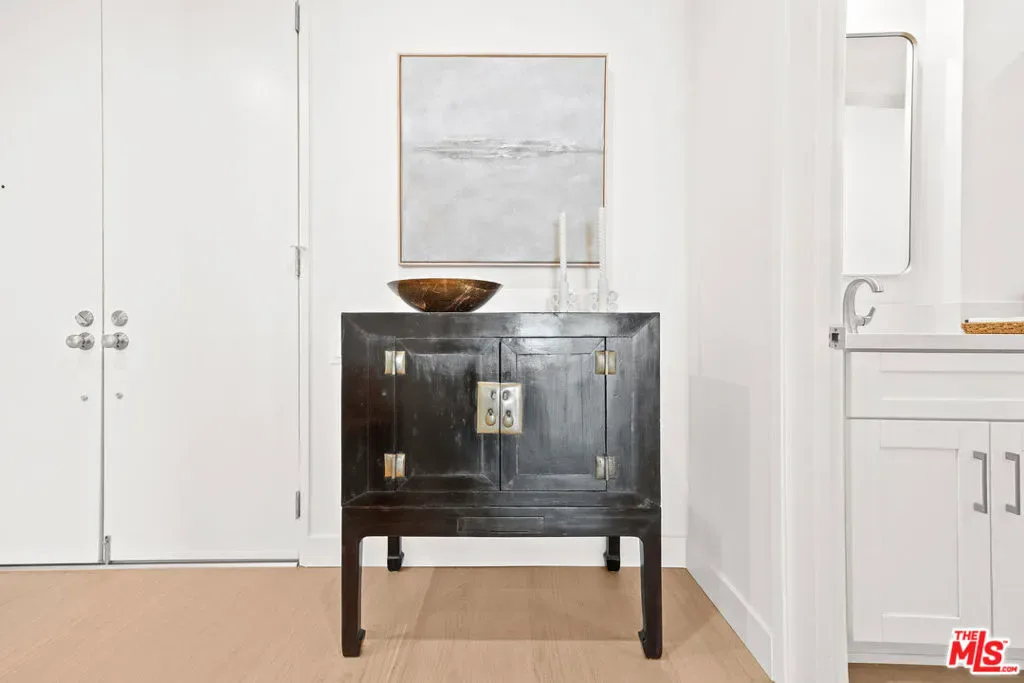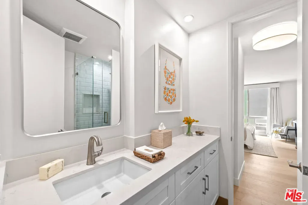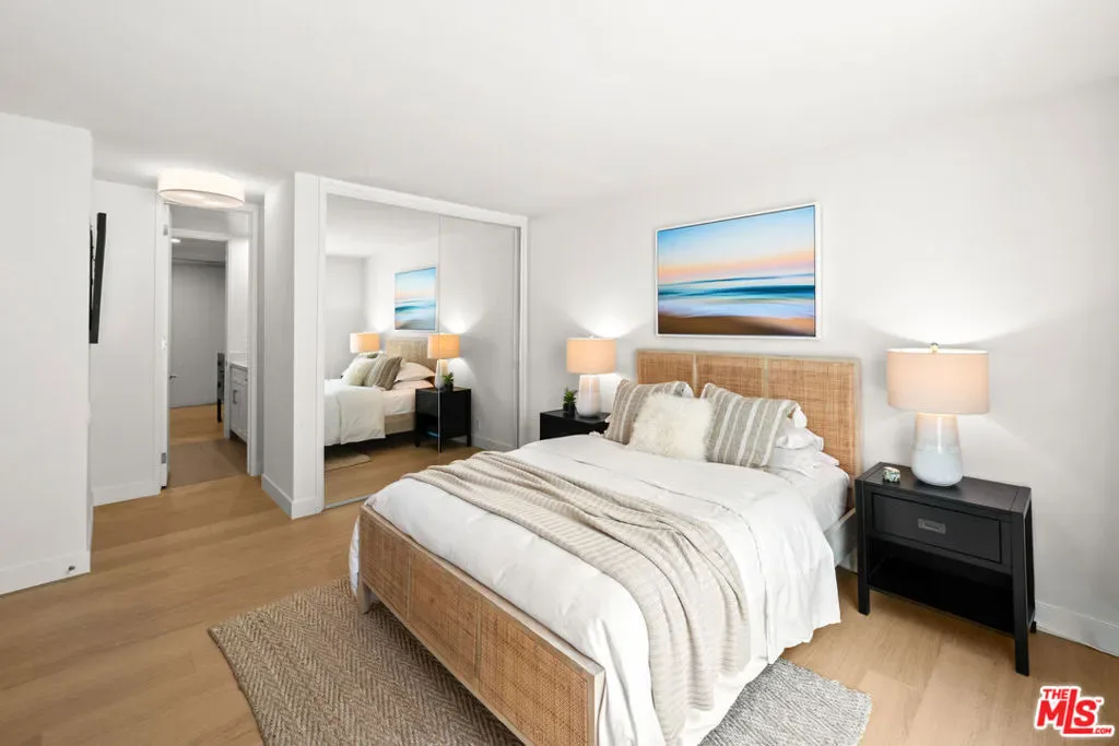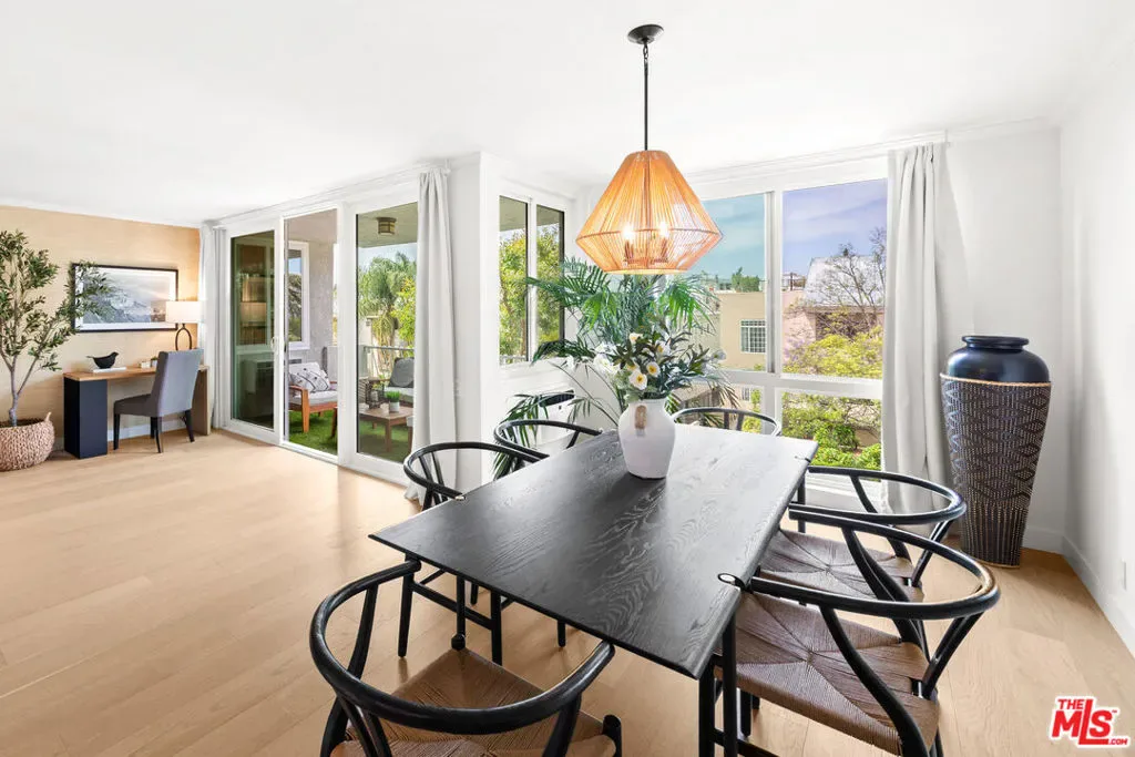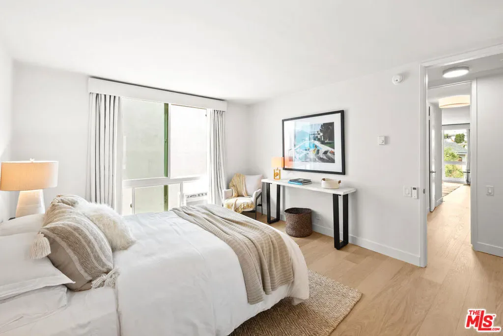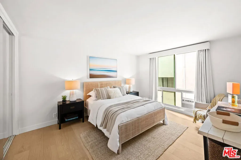 Welcome to 11918 Kiowa #201, a beautifully updated, front-facing residence offering refined luxury and effortless sophistication in the heart of Brentwood. Surrounded by tranquil, tree-lined vistas and blooming jacarandas, this elegant 2-bedroom, 2-bath condominium blends serenity with vibrant city living. Bathed in natural light, the open-concept floor plan is framed by floor-to-ceiling double-pane windows and enhanced by newly installed wood flooring, creating a seamless indoor-outdoor experience. The spacious living area opens to an oversized private balcony, offering a peaceful outdoor setting ideal for morning coffee, unwinding in the evening, or enjoying quiet moments throughout the day. The designer kitchen features custom white cabinetry, pull-out storage, quartz countertops, custom lighting, and new stainless-steel appliances, flowing into a generous dining area ideal for both intimate dinners and effortless entertaining. The primary suite offers a calming, elevated ambiance with views of surrounding treetops and overlooks the inviting private balcony, complemented by a walk-in closet and a spa-inspired bath with soaking tub and shower. The secondary bedroom is thoughtfully positioned for privacy and features generous closet space, along with a beautifully updated en-suite bathroom with refined finishes, creating a welcoming retreat for guests or a sophisticated home office. Additional features include in-unit laundry, a formal double-door entry, two side-by-side parking spaces, and abundant storage. Residents enjoy a well-maintained building with controlled access, elevator service, a renovated lobby and recreation room, secure garage parking, lush landscaping, and earthquake insurance. Perfectly situated with a Walk Score of 88, just moments from Brentwood’s premier dining, boutiques, and everyday conveniences along Wilshire and San Vicente, this home offers an exceptional blend of comfort, style, and location.