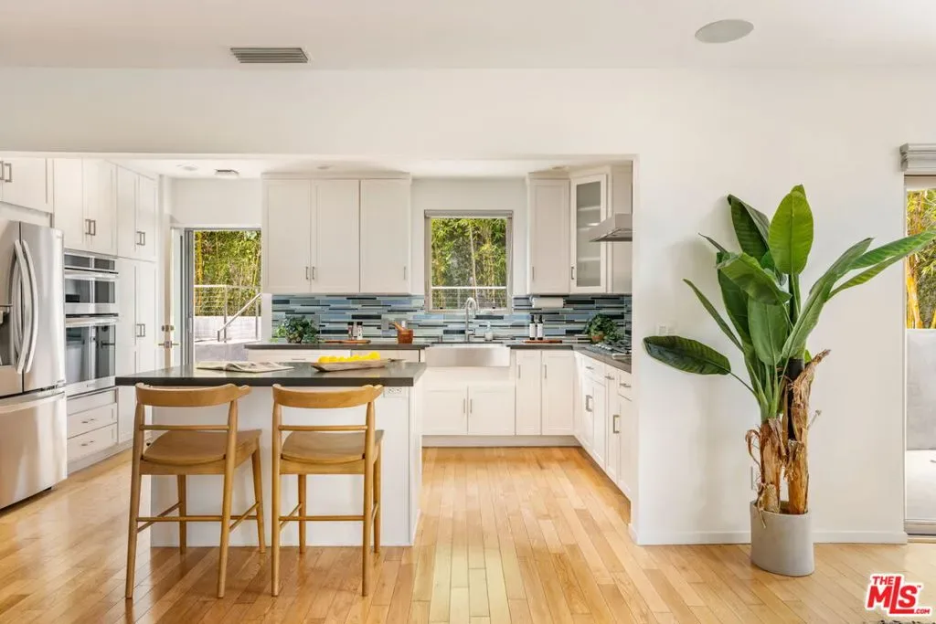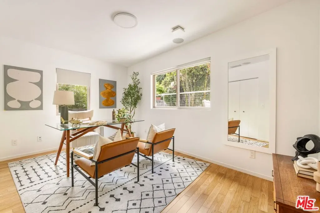 Tucked away on a quiet cul-de-sac in the heart of Mar Vista, this beautifully reimagined contemporary home offers the perfect blend of design, comfort, and functionality. Rebuilt from the ground up in 2013, the residence features 4 bedrooms and 3 bathrooms across a thoughtfully designed floor plan with seamless indoor-outdoor flow. The main level is anchored by an expansive open-concept living space, where the kitchen, dining, and family room come together effortlessly. Rich hardwood floors, clean modern lines, and an abundance of natural light create a warm yet sophisticated atmosphere — ideal for both everyday living and entertaining. Three bedrooms are located on this level — one is currently being used as a home office. Upstairs, the natural light-filled primary suite serves as a private retreat replete with a spa-like bathroom and generous walk-in closet. Above, a spacious rooftop deck captures sweeping city views, including a striking sightline to the Hollywood Sign — an exceptional setting for relaxing or hosting under the stars. The backyard is equally inviting, offering multiple areas for play, dining, and gathering, while a large two-car garage provides direct access into the home for added convenience. Located within the highly sought-after Mar Vista Elementary School district and just moments from the best of the Westside, this home also benefits from a true sense of community in one of the neighborhood’s most desirable pockets. A rare opportunity to enjoy modern living, privacy, and location — all in one exceptional offering.