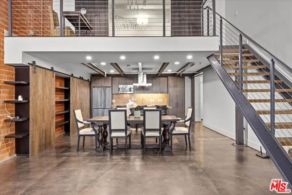 Welcome to Gallery Lofts, a live work community located in the heart of Arts District. This private oversized loft creates the perfect creative sanctuary for artists, musicians, and other like minded individuals. The expansive living area features soaring 16 foot ceilings, polished concrete flooring, an exposed brick wall, and 200 sf private patio that is not included in the total interior square footage. A rare amenity that offers so many possibilities. Also on the first floor is a spa-like full bath and gourmet kitchen with granite countertops, stainless steel appliances, and plenty of built in storage space. Walk up the floating staircase to the primary with bright en-suite bath, and an an option for extra privacy provided by the sliding barn doors. Before entering the primary there is ample space on the mezzanine for a home office or exercise area overlooking your spacious lower level. Experience all of Arts District’s bustling galleries, restaurants, and nightlife. Community features gated security entrances, outdoor atrium, fountains, and a secure mailroom. One assigned parking space with convenient and direct access to the private patio entrance. HOA dues include high speed internet, water, gas, trash, sewer, and community security system.