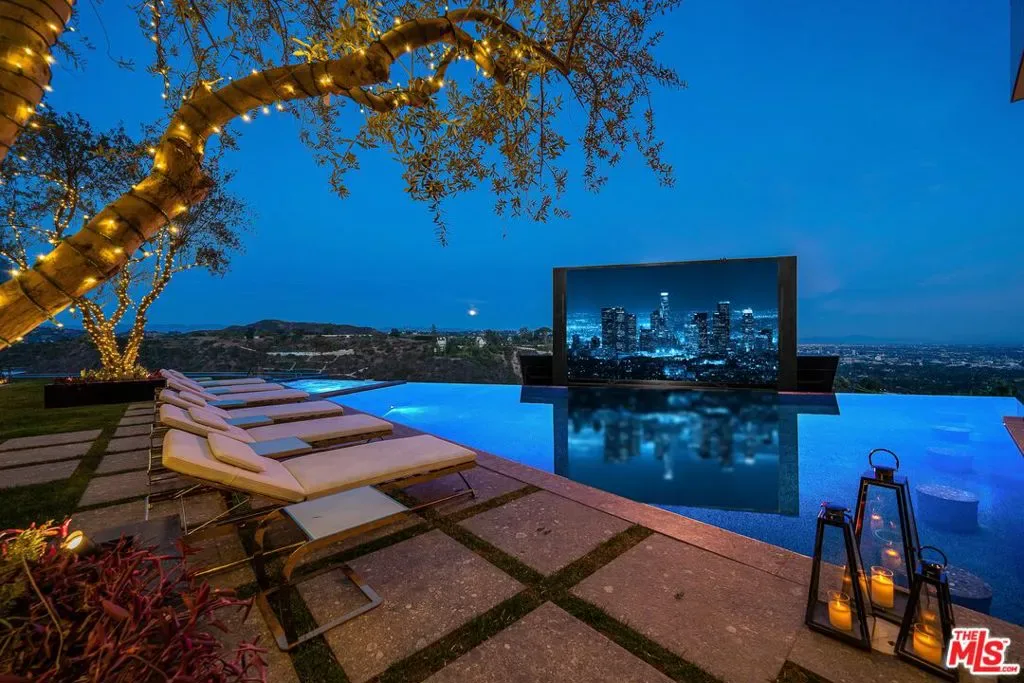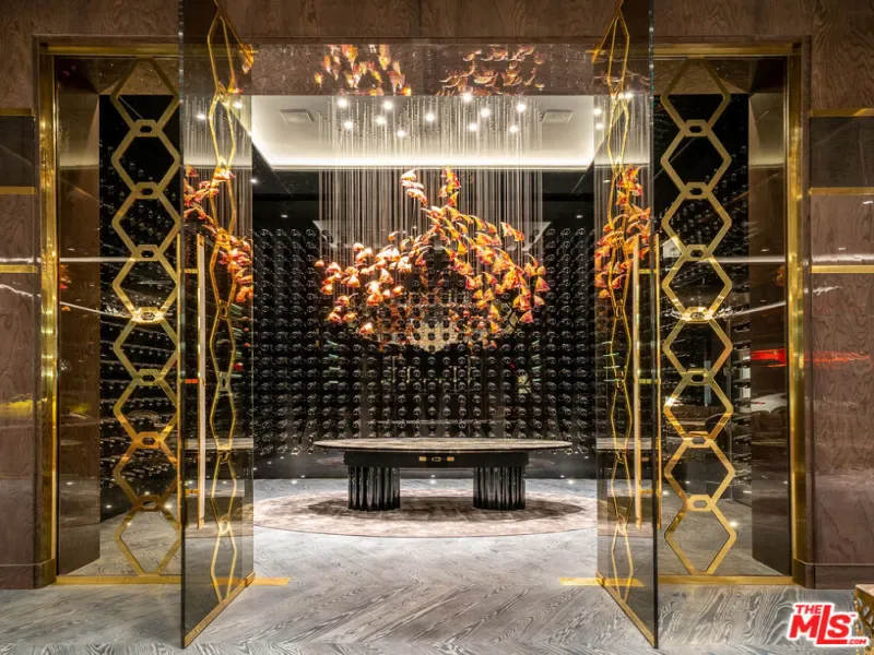 Seller accepts crypto! Experience the pinnacle of lavish splendor and quiet comfort at La Fin, or The End, aptly named as the ultimate, final example of modern decadence and refinement; the be-all and end-all experience in one of the world’s most famous and exclusive enclaves. Sited on a two-acre parcel, this magnificent residence offers 12 spacious bedrooms, 17 bathrooms, remarkable amenities, and brilliant panoramic views of Los Angeles. Just beyond the gated motor court, proceed down to the oversized glass entryway to one of the most beautiful and opulent homes the globe over. A spiral staircase surrounds a stunning 44-foot chandelier made of 55,000 crystals, a showstopping centerpiece yet just one of the impressive custom lighting sculptures throughout the home. The main level features a custom stone bar that flows into the formal living area with a massive hand-carved stone latticework fireplace. All furniture was custom-made for La Fin by Italian luxury brand La Contessina. Motorized Fleetwood pocket doors open to the infinity-edge pool with a striking 23-foot LED screen that rises at the touch of a button and a 30-person lounge area with fire pit. The lower level provides a 6,000-square-foot entertainment area with lofty 18-foot ceilings, custom bar, commercial-grade catering facilities, 1,000-bottle wine cellar, cigar lounge, ice-cold vodka tasting room, and a jaw-dropping automated six-car vehicle elevator display. Additional amenities on the lower level include an outdoor lounge area, luxury fitness center with rock climbing wall, spa, steam room with backlit onyx, massage room, and sound-proof cinema. The second level features a grand primary suite with Italian hand-crafted floor-to-ceiling oak cladding, lounge area, coffee bar, spa-like bathroom with Calacatta Gold marble, massive 100-square-foot shower, solid marble vanity, dual showroom-style walk-in closets, and private wraparound balcony with sweeping views, spa, fire pit, and TV. The rooftop deck offers additional outdoor/entertainment space with built-in seating, fire table, video screen, elevated spa, and even more incredible vistas. Staff residences and a detached guest suite offer ample space. Fingerprint technology and security command center provide the utmost privacy and safety. The meticulously designed and curated La Fin is a once-in-a-lifetime Bel Air estate that can only be admired but never replicated.