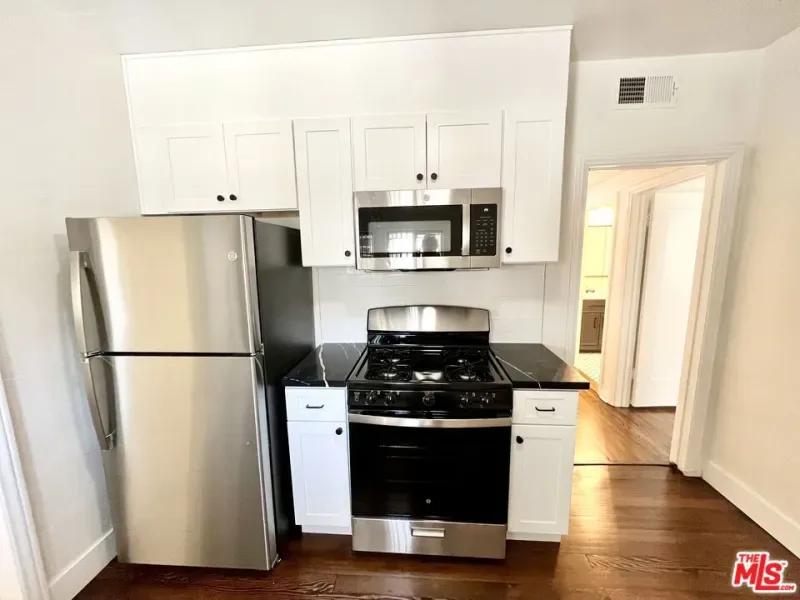 Quiet, tree lined portion of Highland! TWO WEEKS FREE!!! Rental amount advertised is the blended rate for a 1 year lease with 2 weeks free. FULLY AND TASTEFULLY RENOVATED 2+2 apartment in a cute, private duplex on a treelined, quiet street. Lower apartment, very bright, with tons of windows (but still very private) and a massive private front yard. Refinished, original oak, hardwood floors throughout the entire apartment. Large living room, formal dining room, both bedrooms and kitchen. FULLY renovated bathrooms (new designer fixtures and tiles, new vanities, new lighting, new tub/shower, new toilets) – one full main bathroom with a large enclosed glass and tile shower, one private, en-suite primary bathroom with a gorgeous tub/shower combo). FULLY renovated kitchen (refinished wood floors, under-mount stainless sink, quartz counters, new pull down faucet) with brand new stainless GE appliances including a dishwasher and washer and dryer! New paint throughout. Double-paned windows throughout. Entire unit is like new but holds onto it’s old world, Spanish charm. Keyless entry! Has a 1-car private garage (with laundry machines) and another parking space next to it. Also has a patio in back and another small one on the side by the dining room (2 car parking). Excellent Mid-Wilshire location, near Koreatown, Mid-City and Hancock Park.