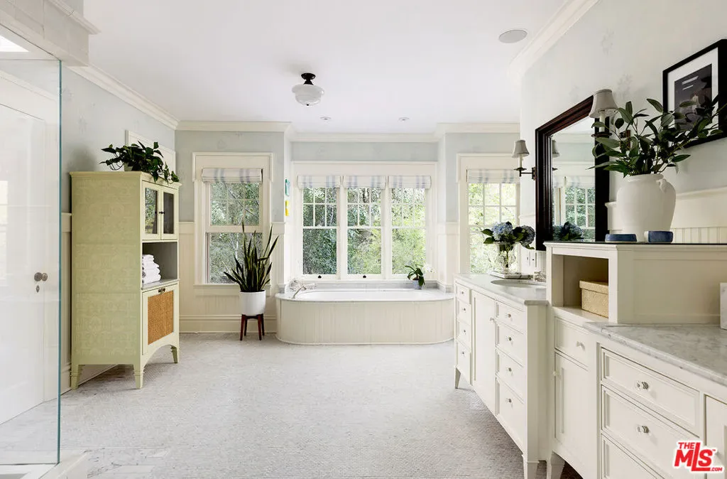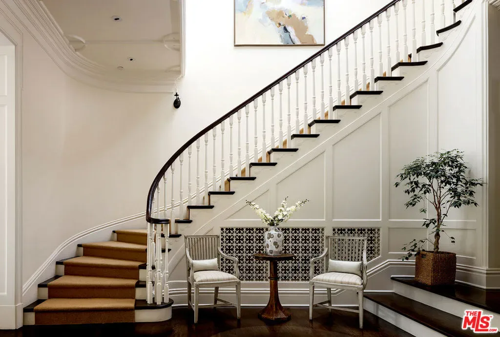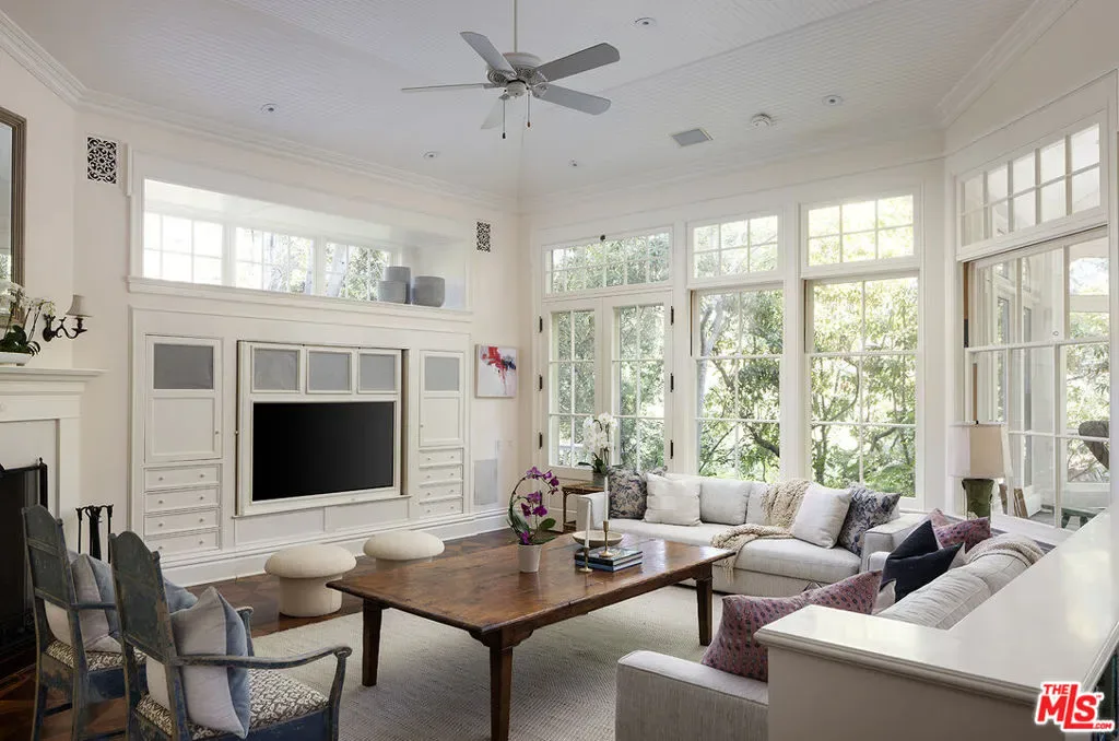 Sited on nearly one acre of lush grounds adorned with blossoming hydrangeas, cascading wisteria, and swaying mature trees, a timeless, magical gated compound unfolds; completely private, hidden from the street and reached by a long, tree-lined driveway. Designed by architect Lise Claiborne Matthews, AIA, ASID, and never before on the market, this rare offering spans two verdant parcels, 13127 Boca de Canon and 2041 Mandeville. Once the site of a historic botanical garden, the property is fully encircled by mature trees, offering exceptional privacy. The enchanting facade opens to interiors that blend elegance and warmth, featuring soaring ceilings, curved glass windows, French doors at nearly every turn, and exquisite custom millwork throughout. The open-concept layout encourages effortless entertaining. Upon entering, guests are welcomed by a sense of scale and sophistication, with an elegant dining room and formal living room anchored by a marble fireplace and framed by architecturally distinctive ceilings and curved glass windows. Filtered light and greenery are visible from nearly every room. The living area includes a cozy step-down family room with media center and fireplace. The chef’s kitchen is appointed with a butcher-block island, three sinks, Viking range, Sub-Zero refrigeration, dual Miele dishwashers, and pantry. A sunlit informal dining area and tranquil sunroom provide serene spaces for morning coffee or quiet reflection. The main level also includes a guest suite, large study, and sixth bedroom. The expansive primary suite offers a sitting room, French doors to a private balcony, custom niches, and a spa-inspired bath with marble dual-sink vanity, oversized steam rain shower, soaking tub, dual water closets, dressing area, and two walk-in closets. Secondary bedrooms are spacious and filled with natural light. The recreational level features an entertainment and wellness wing complete with kitchenette, billiards room, sauna, cinema, gym, wine cellar, soundproof playroom, and a light-filled atrium. Outdoors, resort-style amenities include a 50-foot saltwater pool, meditation garden, koi pond, grassy lawn, patios, and lounging decks, with ample room for future additions such as a sport court or play area. Completing the estate are a three-car garage, a fully functional gym or potential ADU, expansive motor court, and parking for twelve-plus vehicles. The entrance is accessed via a private drive off Mandeville Canyon. Just moments from Brentwood, Santa Monica, and Pacific Palisades, the estate offers both convenience and discretion while feeling entirely removed from the city.