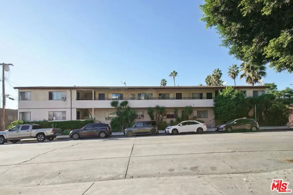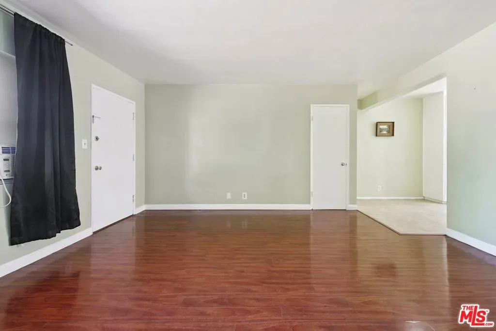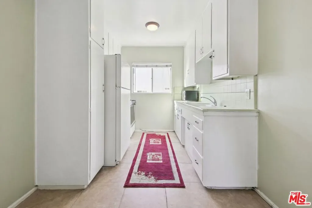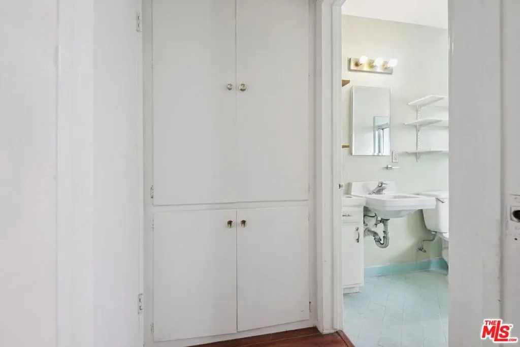 This top-floor unit is the quintessential Hollywood apartment, with modern updates like wood flooring, paired with a vintage 1950s bathroom that’s been well preserved with time. This spacious one bedroom, one bathroom apartment features an extra large living room, a coat closet, and the charm of original built-in storage in the hallway. The kitchen features a double sink, 4-burner range with oven, and a refrigerator with freezer, as well as an adbundance of upper and lower cabinetry for storage. A dedicated dining area is located between the kitchen and living space, and windows on both sides of the unit provide natural light with treetop views. The generously sized bedroom and full bathroom are located off the living space, separated by a small hallway and door that can be closed for added privacy. The bathroom features beautiful blue tile, a shower-over-tub combination, a built-in storage cabinet, and floating shelves. A conveniently located community laundry room can be found on the first floor, and each unit has their own private mail box. Situated on a corner lot surrounded by single-family homes and the local police station, this quaint two-story complex offers just 13 units. In an unbeatable location in the heart of Hollywood, just two blocks from Sunset Blvd, and hot spots like Iki Nori, Superba, and Mother Wolf! You can grab coffee at Groundwork, catch a show at the Hollywood Palladium, and get groceries at Trader Joe’s – all without leaving your neighborhood! Convenient access to the Metro and 101 freeway makes it easy to commute or explore all that LA has to offer! Available for immediate move-in.