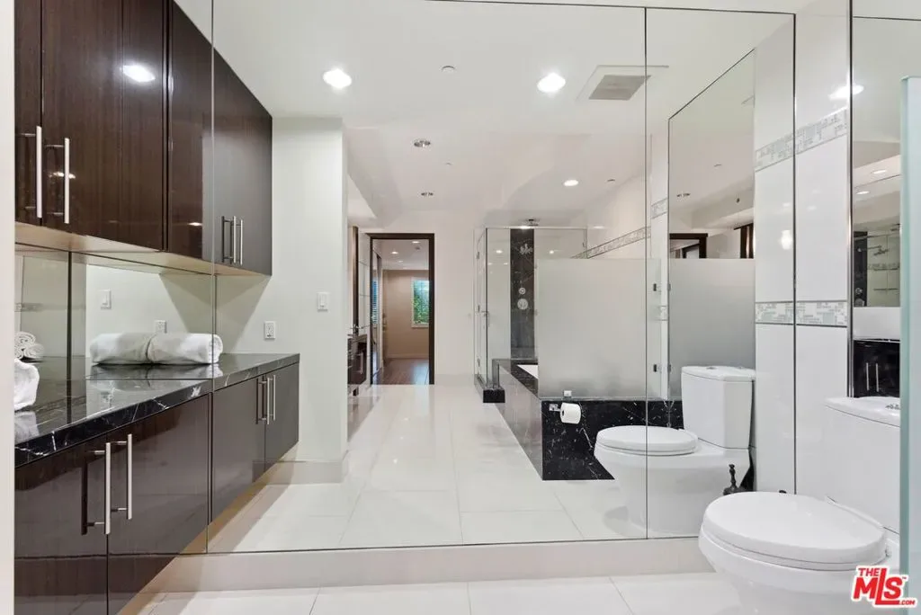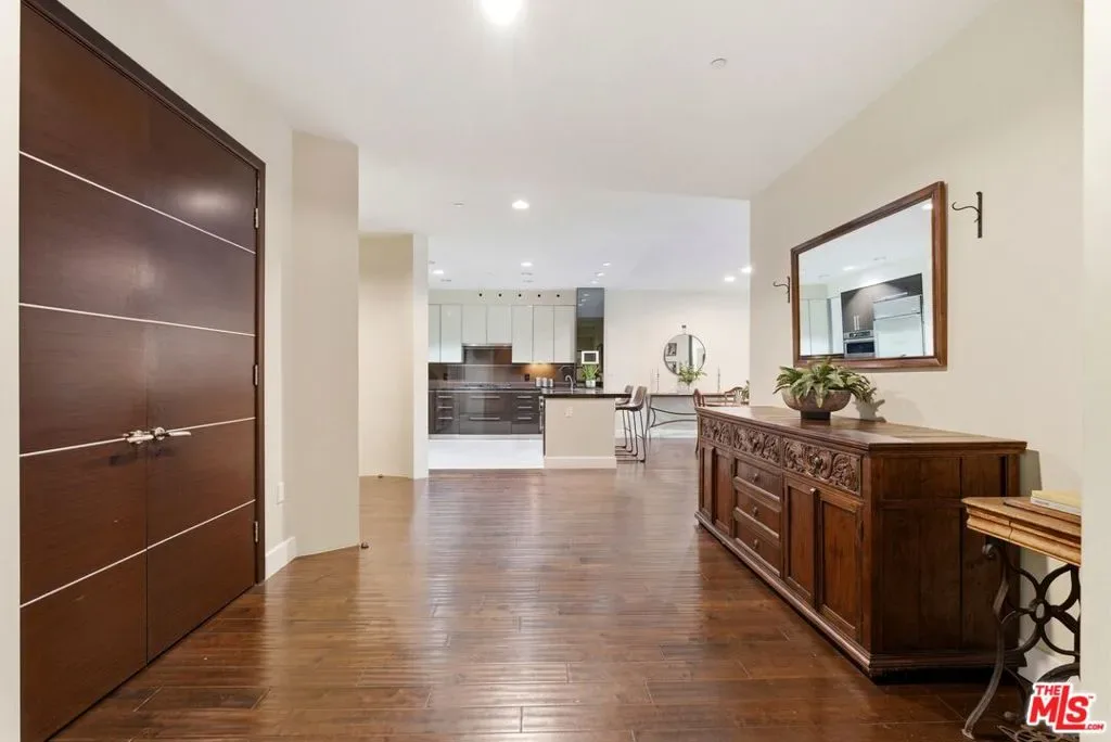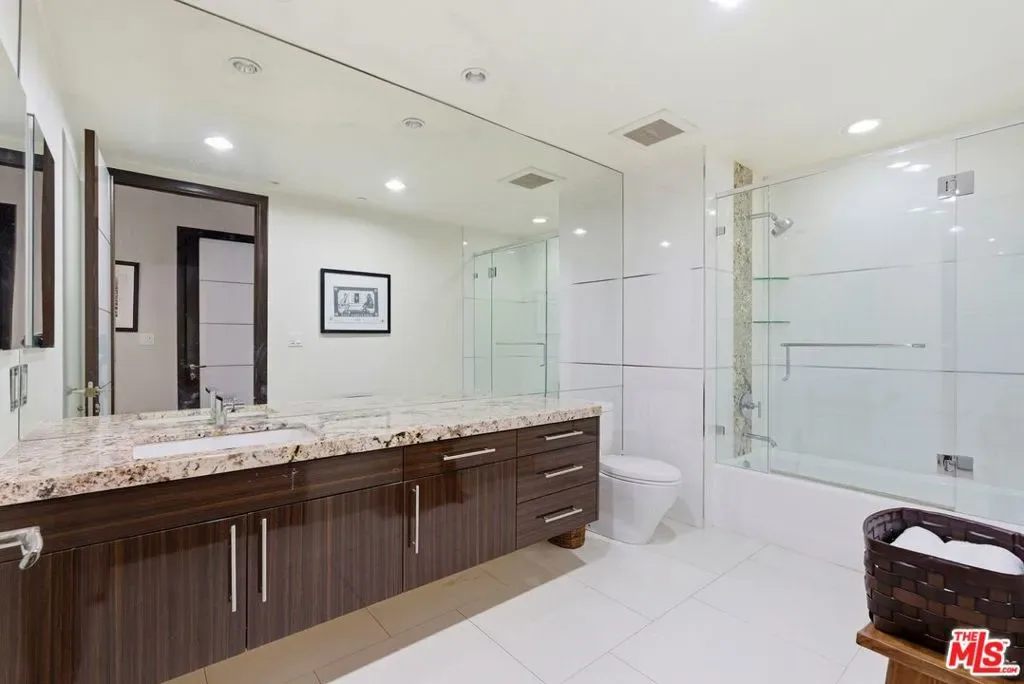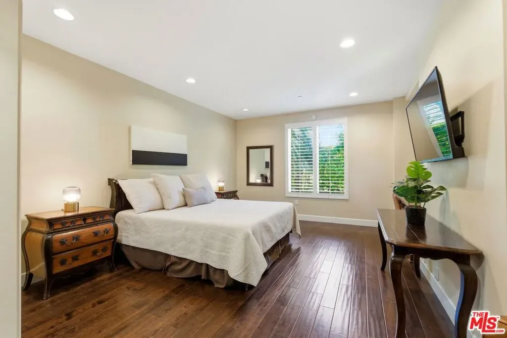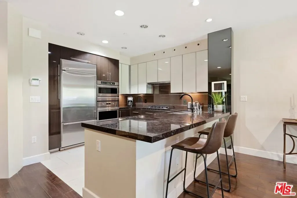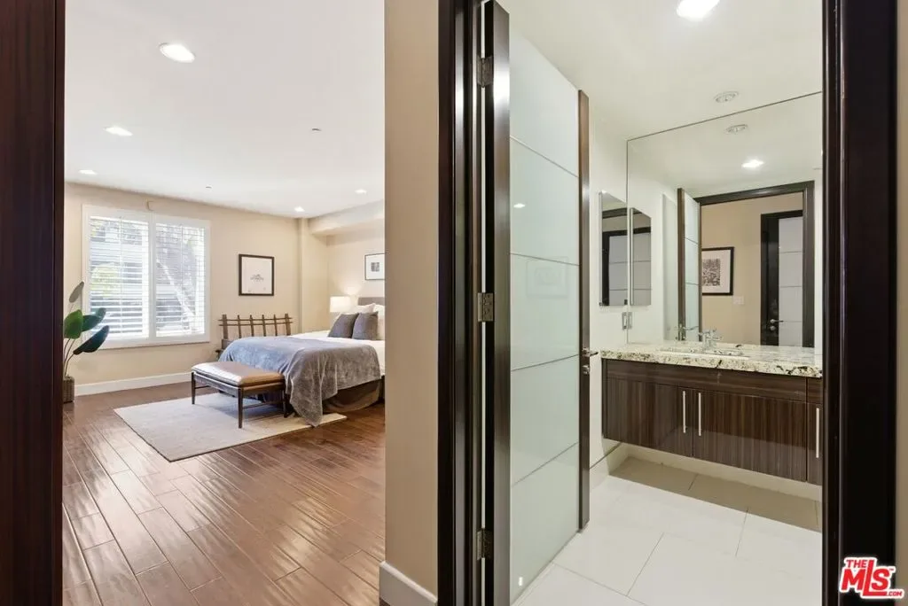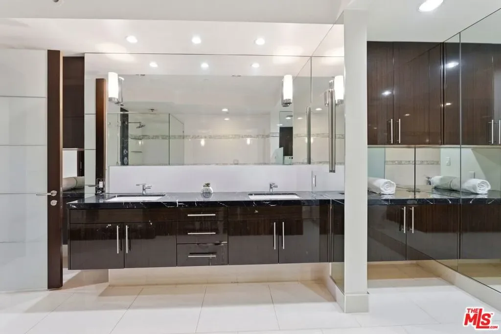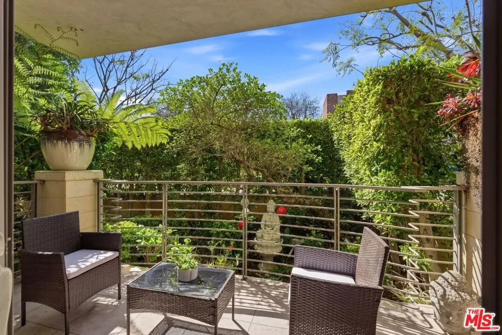 Welcome to your modern 2BR/2.5BA condo located in the Art Deco-inspired Roxbury Place building just steps from Beverly Hills. This spacious 1,991 sq. ft. west-facing first-floor residence features excellent natural light, nine-foot ceilings, and designer finishes throughout. Interior features include dark hardwood floors, recessed lighting, and an open-concept living and dining area that leads to a private tree-lined balcony. The kitchen offers granite countertops, bar seating, and ample cabinet space. The two primary bedroom suites are situated on opposite sides of the living area for privacy, and each includes a spacious en-suite bathroom with dual vanities. The larger primary bathroom features a soaking tub and separate shower. Additional features include a gallery-inspired entry hall, powder room, large storage closet, and in-unit laundry. Building’s luxury amenities include concierge service, fitness center, and outdoor lounge area. HOA dues include earthquake insurance. Conveniently located approximately one mile from Roxbury Park and just minutes from the shopping, dining, and entertainment along Rodeo Drive, South Beverly Drive, and the business district of Century City.