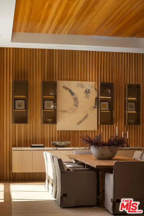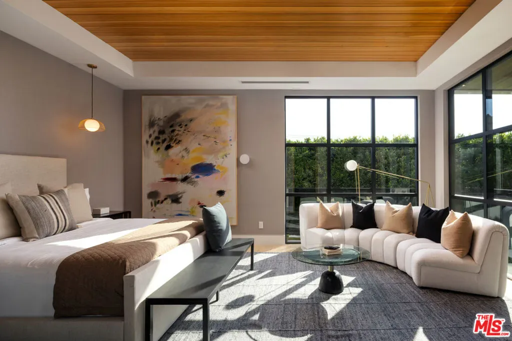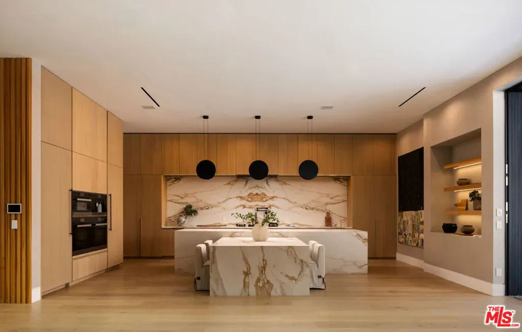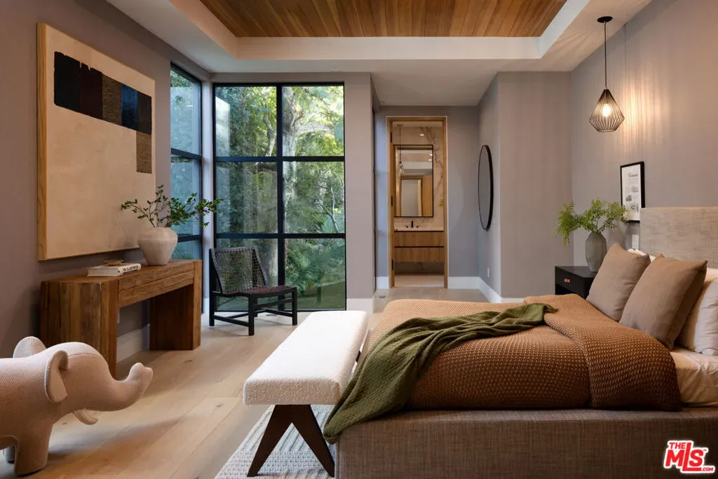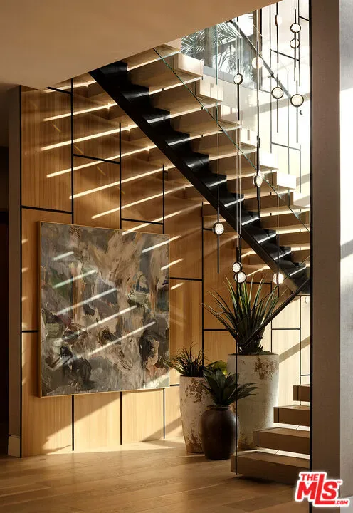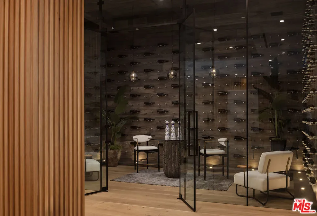 An absolute dream for recreational enthusiasts, growing families, and lovers of the al-fresco way of life, this exquisite haven includes a tropical open-air dining room, dedicated pickleball court, a professional-size basketball/sports court, and putting green, all enveloped by a flourishing leafy paradise. Enjoy a casual, fun-filled lifestyle at this private, family-friendly luxury resort that also features a cabana with outdoor kitchen and rainfall curtain, relaxation loggia, a 16-person sunken fire pit with glass view to pool, numerous sitting areas, organic gardens, and 3,000-square-foot rooftop deck optimized for entertaining under California skies. An expansive gated motor court provides parking for ten cars, and a striking entry calms the senses with soft organic tones complementing the lush hillside beyond. A gourmet chef’s kitchen is outfitted with bookmatched stone slabs, triple waterfall island, and Miele appliances as well as a commercial-grade walk-in refrigerator in the caterer’s prep galley. Both bar and wine room are showpiece standouts, and the theatre is expertly configured to match a true cinema experience. Upstairs, the primary wing alone spans 3,000 square feet and offers a lounge, two-sided fireplace, and a marvelous spa-worthy imported European stone-clad bathroom plus dual closet changing rooms, one of which features a walk-out balcony with fire pit overlooking the grounds below. Other amenities include an office, gym, sauna, and mud room. Indulge in an effortless resort-quality lifestyle from this extremely private entertainer’s compound surrounded by natural greenery with sumptuous canyon views, showcasing a variety of premier amenities on 1.3 acres of mostly flat usable land. Secluded in a park-like setting with no immediate neighbors, this ideal estate promises joyful existence and enduring, uninterrupted leisure from one of the most highly sought-after locales in the world. Welcome to the peak of contemporary luxury.