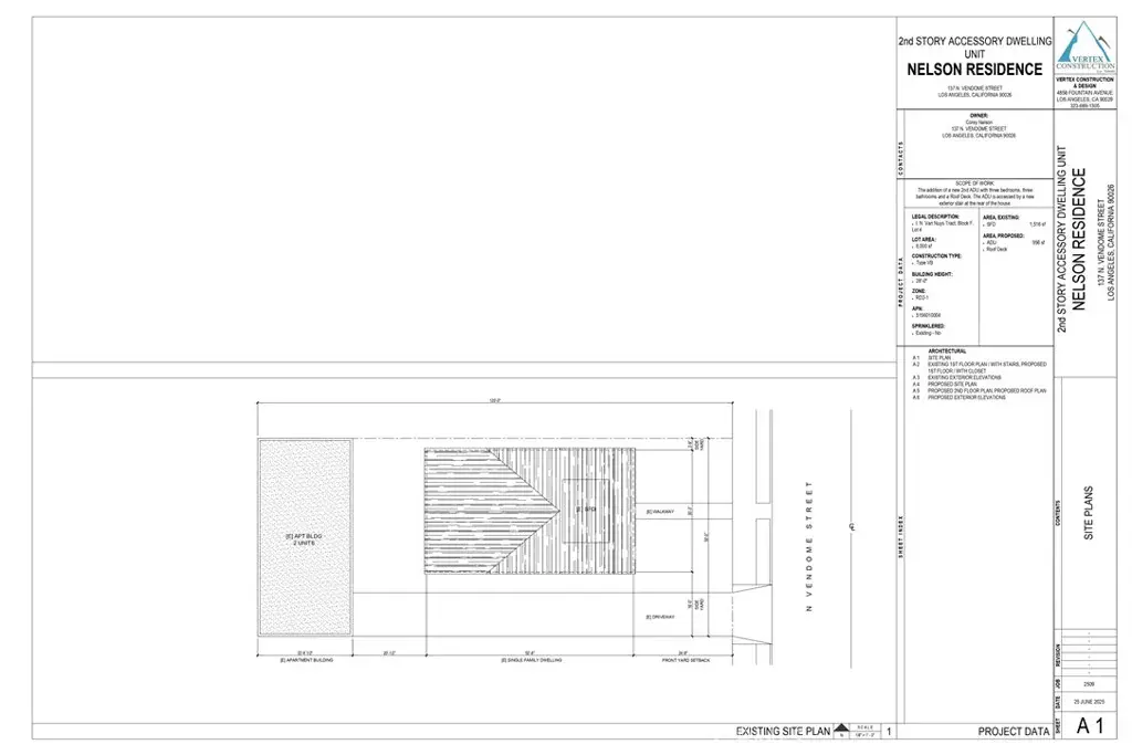 A rare opportunity to own a standalone residence with built-in income, this thoughtfully renovated two-building triplex offers privacy, flexibility, and long-term potential in a central Los Angeles location. The front home—separate from the rear units—lives like a single-family residence, complete with its own driveway and carport accommodating 4–5 cars in tandem, a true luxury in the city. Inside, the front residence features two ensuite bedrooms, bonus upstairs living space, and an open-concept floorplan that flows seamlessly from the front door through the main living areas and out to the patio—ideal for everyday living or hosting. Recent upgrades include a new foundation (allowing for future vertical expansion, buyer to verify), new sewer lines serving both buildings, upgraded drainage with a sump pump system, a new side fence, and interior improvements such as updated medicine cabinets, tub, and additional electrical outlets. The rear building provides two additional units—a one-bedroom residence on the lower level and a three-bedroom residence above—along with an attached two-car garage. All units include in-unit laundry hookups, offering convenience for occupants and ease of ownership. The front home is currently furnished and set up for 30+ day rental use, while existing rents include a scheduled 3% annual increase in May, bringing monthly rent to $5,857.34. Ongoing landlord expenses are minimal and primarily limited to water/refuse, yard maintenance, and pest service. There are also plans that have been submitted and are currently awaiting approval for an ADU layout involving a second-floor and roof deck conversion. The submitted plans illustrate the current downstairs floor plan along with a proposed upstairs conversion to create an additional 3-bedroom, 3-bath ADU with roof deck and separate access from a rear balcony (buyer to verify status and requirements). This presents a compelling opportunity for expanded living space or additional income potential. Centrally located with quick access to Downtown Los Angeles and nearby cultural landmarks such as Dodger Stadium, the Walt Disney Concert Hall, and the Hollywood Bowl—each within approximately a 10-minute drive—this property is ideal for an owner-user seeking a private home with supplemental income and future upside.