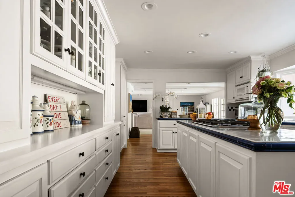 Tucked away in the exclusive Westridge Hills, this custom-built sanctuary offers an unparalleled blend of privacy, elegance, and modern comfort. A long gated driveway leads to this exceptional estate, set on a sprawling, flat lot that provides both seclusion and ample space for luxurious living. The home features four bedrooms, four and a half baths, and primary suites on both levels, offering flexible living arrangements. Vaulted ceilings and abundant natural light enhance the open-concept design, where French doors seamlessly connect the indoor spaces to a lush, resort-like backyard. The expansive outdoor oasis boasts a swimmer’s pool, hot tub, and a sprawling patio with an outdoor fireplace, built-in BBQ, and full kitchen–including a double sink and refrigerator–perfect for entertaining. A serene waterfall cascades down the hillside, adding a touch of tranquility. Upstairs, a loft-style office and three additional bedrooms offer space for work, rest, and play. The primary suite features high vaulted ceilings and a cozy window seat overlooking the lush landscape. The gourmet kitchen is a chef’s dream, showcasing two islands, two dishwashers, custom cabinetry, and a large walk-in pantry. The enormous family room with a wet bar and full bath opens directly to the backyard, creating an effortless indoor-outdoor flow. Freshly refinished hardwood floors, new carpeting in select rooms, and a fresh coat of paint inside and out make this home truly move-in ready. An attached two-car garage with a newer door and additional parking for multiple vehicles completes the property. Experience the feeling of a private retreat, right in Los Angeles–where luxury, comfort, and seclusion come together in perfect harmony.