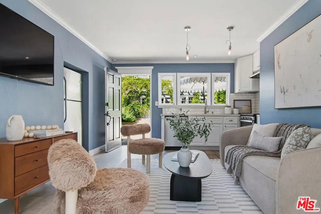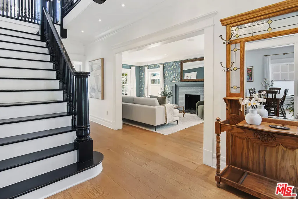 Set behind private gates, this radiant home draws you in from the very first moment. Thoughtfully curated with designer details and pops of color, the interiors feel both elevated and cozy at the same time. A sunlit entry opens to a majestic staircase and a stylish living room designed for gathering. The beautifully updated kitchen anchors the heart of the home with its large center island perfect for cooking, entertaining and just hanging out. The dreamy sunroom is ideal for reading, playing or looking out to the grassy backyard. Hardwood floors carry warmth through every room. Upstairs, three well-proportioned bedrooms and two baths offer comfort and privacy. The primary suite is distinguished by soaring ceilings and a generous walk-in closet. The other bedrooms are bright, spacious and welcoming. The backyard is a destination in itself. Wisteria drapes gracefully over the deck lending shade and a romantic sensibility to al fresco dinners and leisurely weekend brunches. A sparkling pool completes the picture. Tucked thoughtfully alongside is a resort-inspired guest house with its own living room, bedroom, bathroom and kitchenette. The converted garage functions as a beautifully appointed home-gym fitted with rubber flooring and abundant natural light. The main house has 3bd/3ba and the guest house has 1bd/1ba. There is also additional attic space that has been converted to a fun, lounge area with carpet and a mini split system. Just moments from Larchmont Village, boutiques, cafes and the beloved Sunday Farmer’s Market, homes like these are always a wonderful surprise and do not come along often.