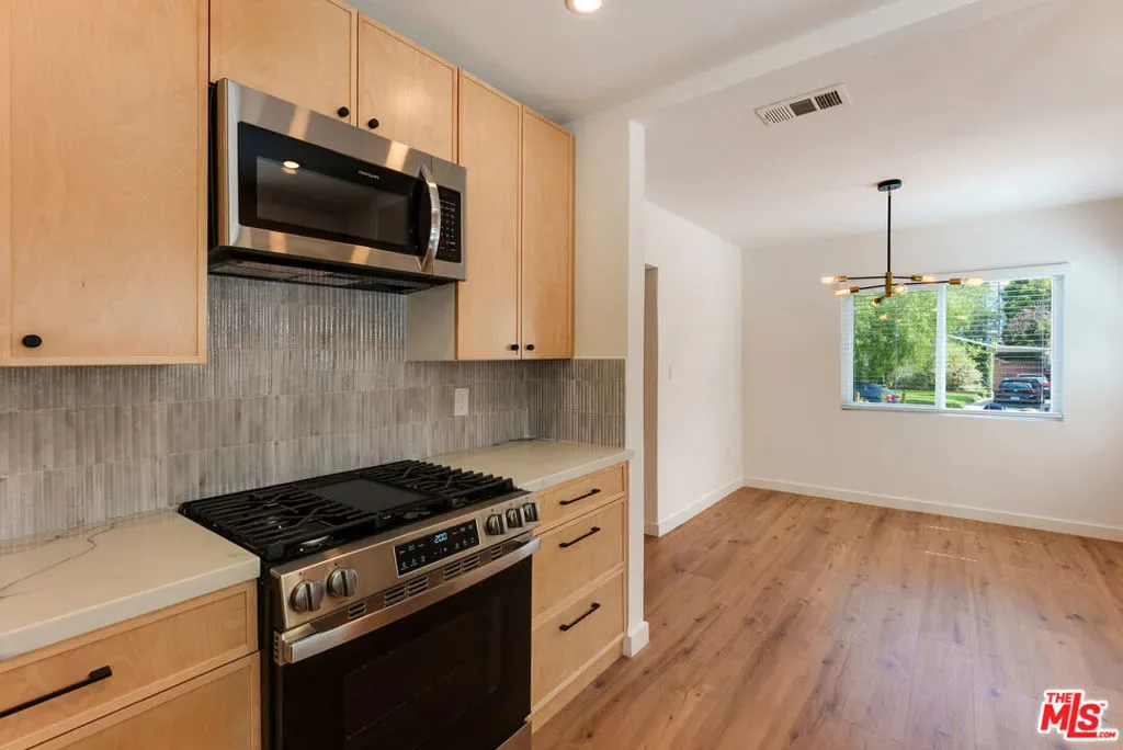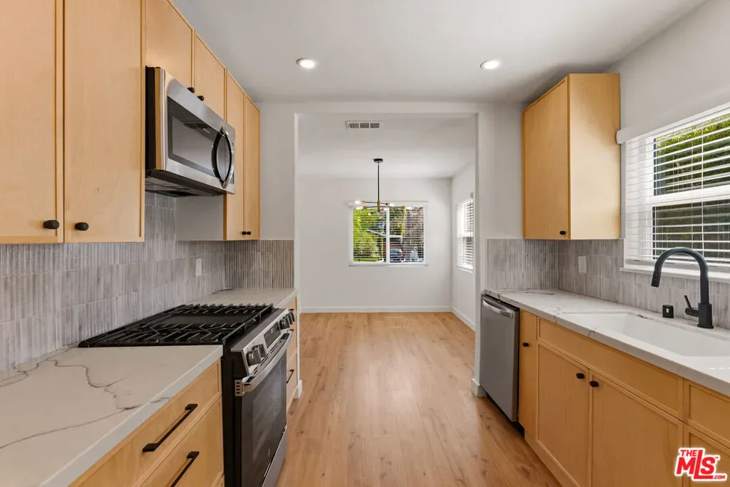 Nestled in the heart of Silver Lake, this beautifully designed 3-bedroom, 2-bathroom residence offers privacy, style, and effortless California living. Set behind a gated front yard with lush, thoughtfully designed landscaping and secured entry, the home welcomes you with exceptional curb appeal and a serene atmosphere. Inside, light-filled living spaces create a warm and inviting ambiance, highlighted by wide plank flooring, large picture windows, and a striking fireplace that anchors the main living area. High-end finishes and designer details are showcased throughout, creating a cohesive and elevated living experience. The kitchen is both functional and stylish quartz countertops, stainless steel appliances, matte black fixtures, and a designer tile backsplash, all complemented by abundant natural light. The thoughtfully designed layout offers three spacious bedrooms and three bathrooms, including a comfortable primary suite with ample closet space. The additional bedrooms provide flexibility for guests, a home office, or creative space. Gated parking enhances both convenience and privacy. Ideally located near Silver Lake’s popular dining, shopping, and neighborhood hotspots, this home offers a seamless blend of comfort, style, and prime location in one of Los Angeles’ most sought-after communities.