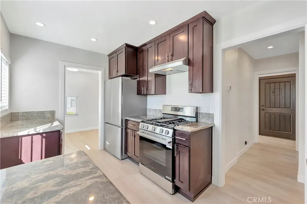 Experience modern Los Angeles living at its finest in this beautifully reimagined residence at 145 S Woods Ave. Offering an expansive backyard with incredible ADU potential—perfect for those looking to build equity or create a rental income stream. Meticulously remodeled and bathed in natural light, this home has been extensively refreshed highlighted by new flooring, fresh paint, and energy-efficient dual-pane windows throughout. The remodeled kitchen is a standout, boasting sleek updated cabinetry, elegant granite countertops, and stainless steel appliances including a 5-burner stove. Beyond the aesthetic upgrades, enjoy the comfort of central air and heat, a completely renovated bathroom, and the convenience of walk-in closets. The exterior is equally impressive, offering a huge yard, long driveway and a detached 2-car garage. This turn-key gem offers the perfect blend of contemporary style and future investment upside in a prime location.
