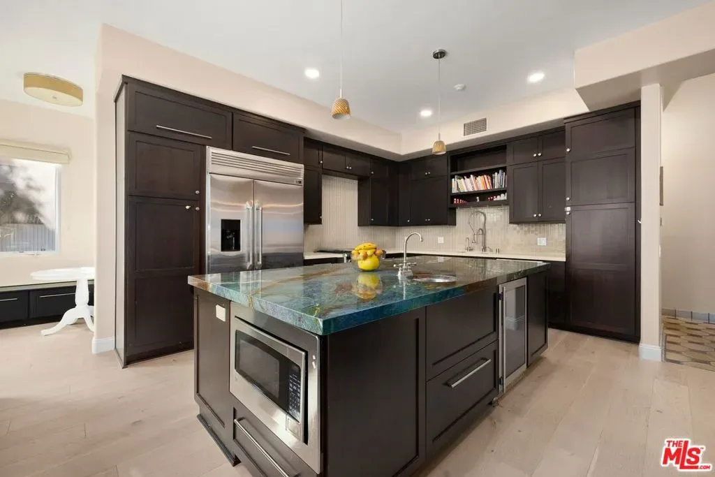 This beautifully reimagined Spanish-style residence, nestled in the highly sought-after Pico-Robertson neighborhood near Beverlywood, offers a seamless blend of timeless character and modern luxury. Step inside to an inviting living room, where a charming fireplace sets the tone for intimate evenings and relaxed gatherings. Just beyond, the heart of the home unfolds a stunning chef’s kitchen, thoughtfully designed to balance form and function at a high level. Anchored by an expansive island, the space is outfitted with premium stainless steel appliances, including multiple ovens, a warming drawer, two dishwashers, two cooktops, and three sinksan intentional layout that supports both everyday use and effortless entertaining. Generous storage, refined finishes, and a natural flow make this kitchen both highly functional and visually compelling. The adjacent dining room connects seamlessly, creating an ideal setting for hosting with ease. The first floor offers a serene retreat in the spacious primary suite, complete with a spa-inspired en-suite bathroom featuring a soaking tub, walk-in shower, and dual vanities, your own private sanctuary. Two additional bedrooms, each with their own en-suite bathrooms, provide comfort and privacy for family or guests. Upstairs, a versatile bonus area awaits alongside a fourth bedroom with en-suite bath and a dedicated office ideal for work, creativity, or quiet escape. Outdoors, the backyard invites you to unwind and entertain under the open sky. The patio sets the stage for al fresco dining, where evenings linger a little longer and every gathering feels effortless. This is more than a home, it’s a thoughtfully designed residence where quality, scale, and livability come together seamlessly.