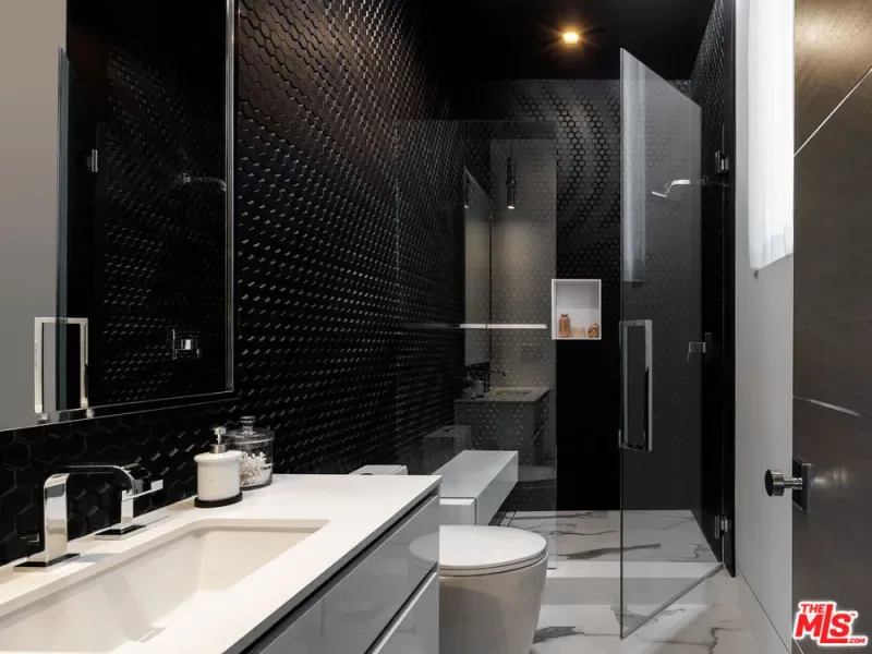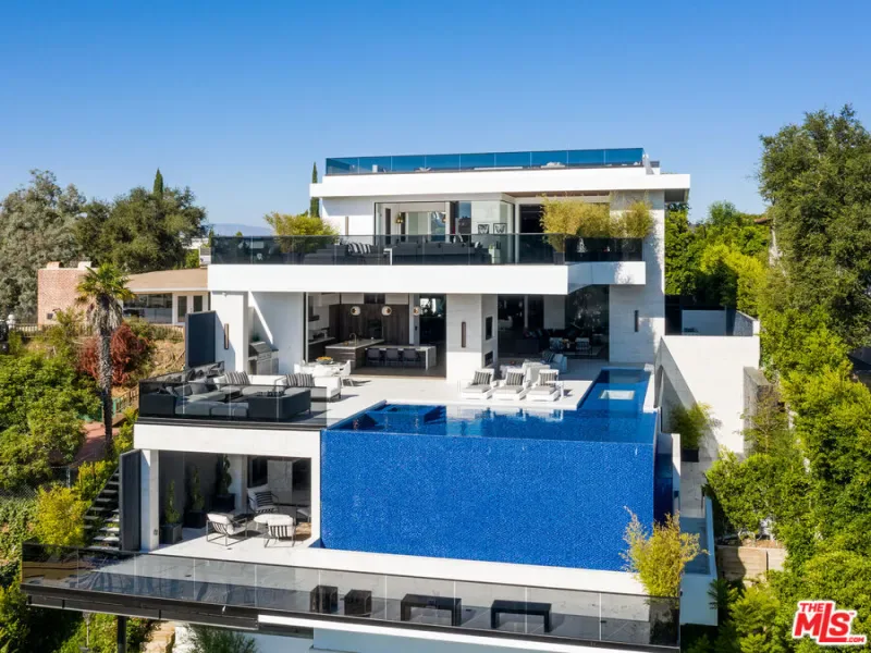 In one of Bel Air’s most prestigious enclaves, this warm modern masterpiece by Ramtin Ray Nosrati captures sweeping vistas that span city lights, ocean horizons, and canyon ridgelines. A grand, light-filled floor plan unfolds with bespoke flooring, sculptural lighting, and expansive Fleetwood walls of glass that recede to create a seamless dialogue between indoors and out. The gourmet kitchen is a study in quiet refinement, wrapped in rich wood and marble, and appointed with top-tier appliances, dual ovens, wine refrigeration, and an oversized island with breakfast bar. Just beyond, a striking glass-bottom infinity pool spills gracefully into a lower-level waterfall, an intentional moment that anchors the home with serenity and visual intrigue. Five-star amenities include a sumptuous primary suite with private terrace, beautifully appointed guest accommodations, a dual-sided tropical fish aquarium, indoor waterfall, formal dining room, and multiple fireplaces that lend warmth throughout. Gated grounds and lush, layered landscaping frame a series of outdoor living spaces designed for both privacy and repose. Created with the consummate entertainer in mind, the lower level reveals a suite of extraordinary amenities, including a luminous onyx bar, a state-of-the-art theater with fiber-optic star ceiling, an immersive video wall, fitness studio, and a temperature-controlled wine cellar. A rare architectural work of art set within one of Bel Air’s most coveted addresses.