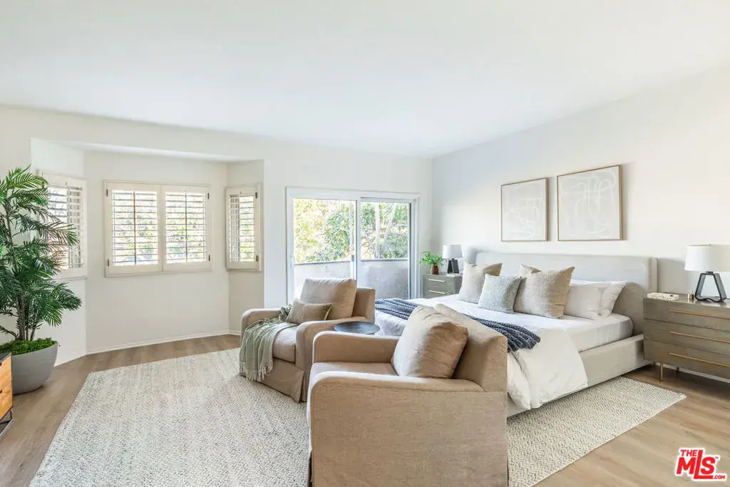 An exceptional over-1,900-square-foot luxury townhome in one of Westwood’s most coveted residential enclaves, surrounded by single-family homes on a beautifully tree-lined street and just moments from prestigious Fairburn Avenue Elementary. This rare offering is enormous in scale, living far more like a private home than a condo, with exceptional square footage and a thoughtful, spacious layout. The dramatic living room, designed like a true great room, features expansive windows with custom plantation shutters, and abundant natural light, creating an impressive yet inviting space for everyday living and entertaining. A versatile lower-level flex/basement space adds exceptional functionality, ideal for a media room, gym, or office. The chef’s kitchen is exceptionally large, featuring brand-new appliances, generous counter space, a dedicated breakfast area, and an additional bar counter. The spacious primary bedroom is a serene retreat with multiple windows enhanced by custom plantation shutters, a charming windowed alcove, sliding glass doors to a private balcony, a huge walk-in closet, and a very large spa-style bathroom, while the guest bedroom is generously sized and thoughtfully appointed with custom built-ins. Laundry in unit. Two car side-by-side parking with direct access to home. HOA dues include Earthquake Insurance. Be prepared to cherish this healthy lifestyle and exclusive living.