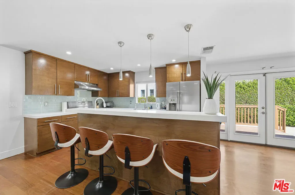 FURNISHID, Gorgeous , Mid-Century Modern . Amazing location surrounded by shops & restaurants a stone’s throw from Century City & Beverly Hills. Beautifully 3Bedroom+ den 2.5 Baths plus guest room. Bright & light open floor-plan, hardwood floors, recessed lights & picture windows looking out to expansive yard. Gourmet kitchen , stainless steel appliances & center island with counter seating. Dining area opens through new custom French doors to redwood deck with outdoor dining area. Master suite with walk-in closet & French doors with in-glass shades to back patio & yard. Two front bedrooms with jack-and-Jill bathroom. Powder room, laundry & updated systems including central air & heat. Detached 2-car garage, 1 side for car and 1 finished as guest room w/ recessed smart lights, AC & separate entrance. Mature landscaping & custom redwood gating .Close to Pico -Robertson and shops .The Square footage is approximate. Call regarding pets. Available for Short and long term.