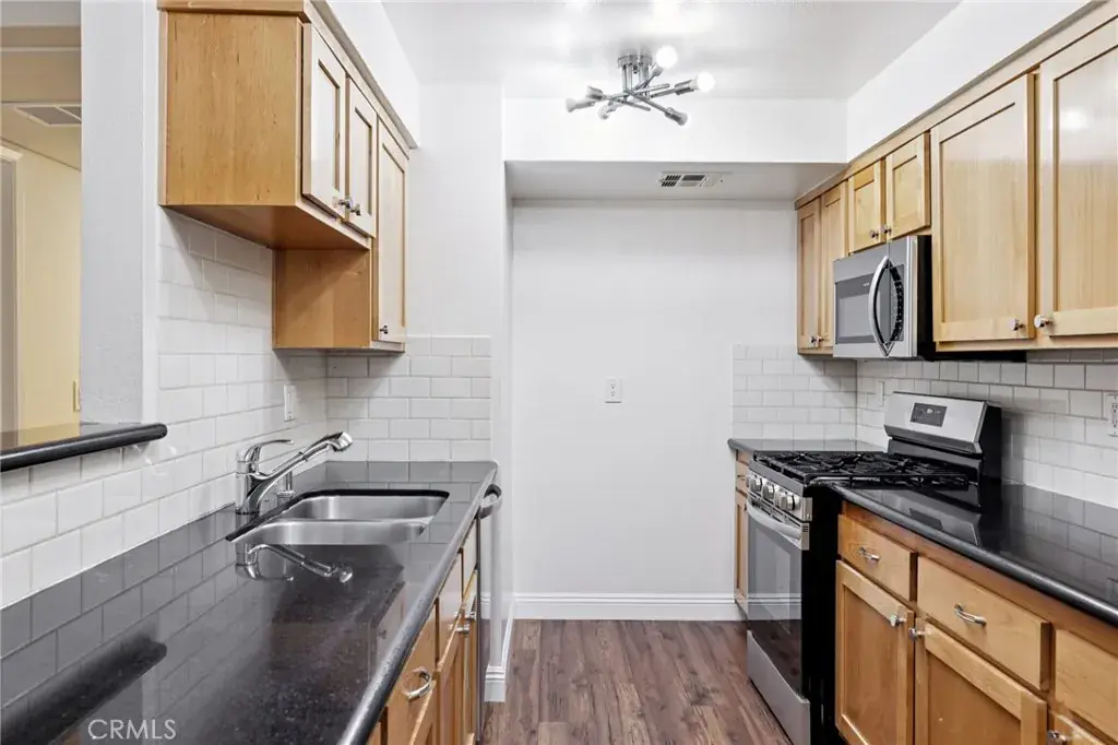 Spacious all one level WESTWOOD condo on first floor of a secure 8 unit building on tree lined Camden Avenue. Gated parking garage. Two tandem parking spaces. Enjoy the Elevator for easy transport of groceries. This lovely 1347 square foot condo, is one of only two units on the first floor. Enter to enjoy newly installed waterproof, pet friendly laminate flooring, fresh paint, and an open floorplan. If you’ve been looking for more space, this is it! The kitchen boasts newer appliances, granite counters, plenty of cabinetry, and is open to the dining and living spaces. South facing windows let in plenty of natural light. Living room has enough space for the coziest and most comfortable sectional, plus there is a working gas fireplace! If the goal is to create a coffee bar, or display collections from your travels the wet bar will please. The dining room can accommodate a good sized table but so too can the private patio be another area for relaxing or morning coffee after a nice workout. There is also an additional nook which is perfect for a home office or workout area. Down the hall is a guest bedroom with a ceiling fan and spacious closet, then a full bathroom. In-unit stackable laundry closet is conveniently located in the hallway. Finally, the primary suite with a ceiling fan and recessed lighting too is at the rear of the condo – providing privacy – includes large closets plus an ensuite full bathroom with shower tub combination, subway tile and two sinks. Extra secure storage closet in the building! Central HVAC. Easy access to Westwood Village, UCLA, the Hammer Museum and close to shops and restaurants and the 405!