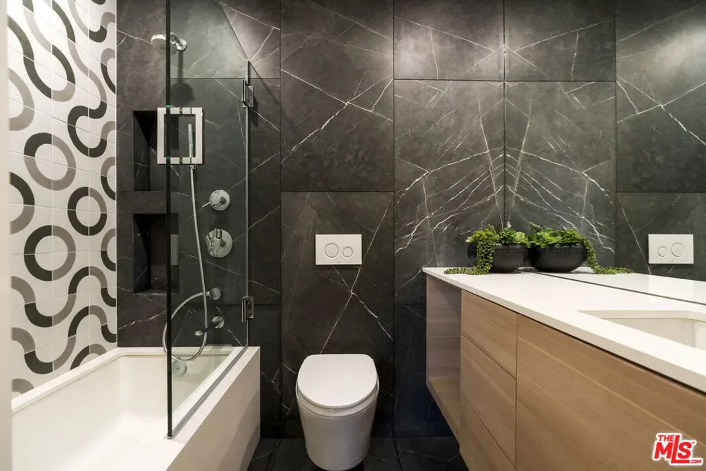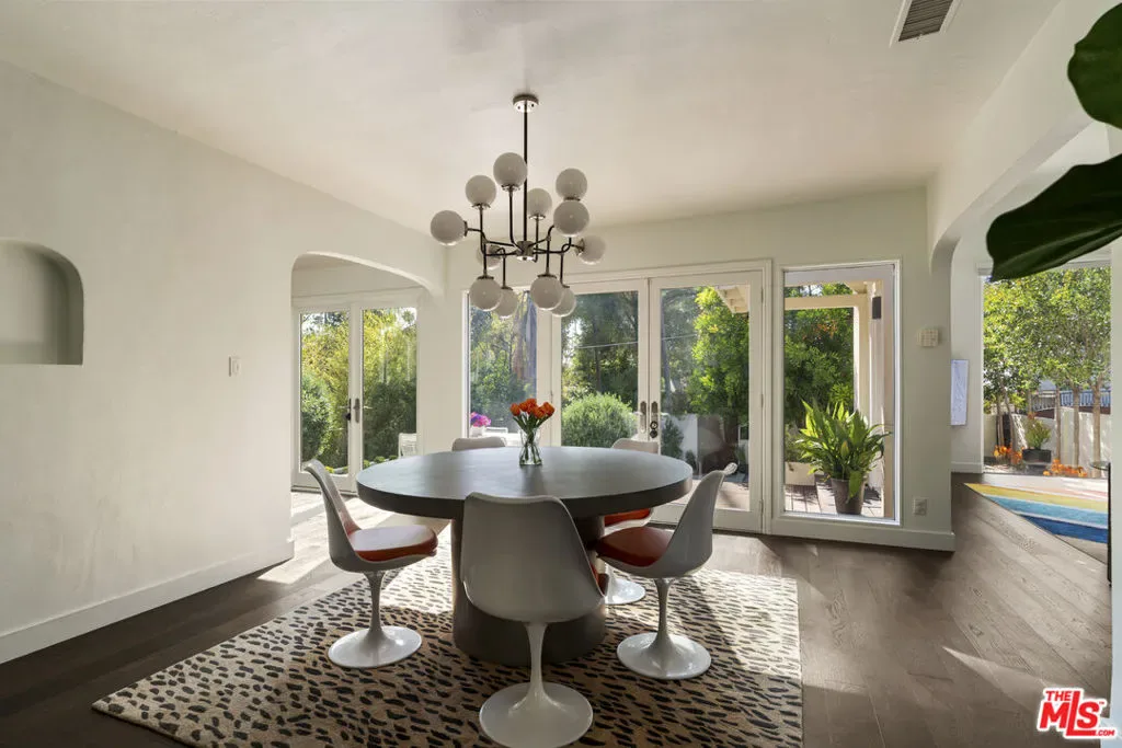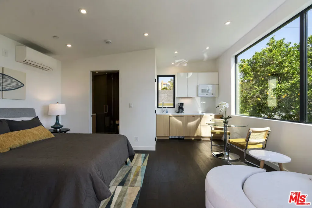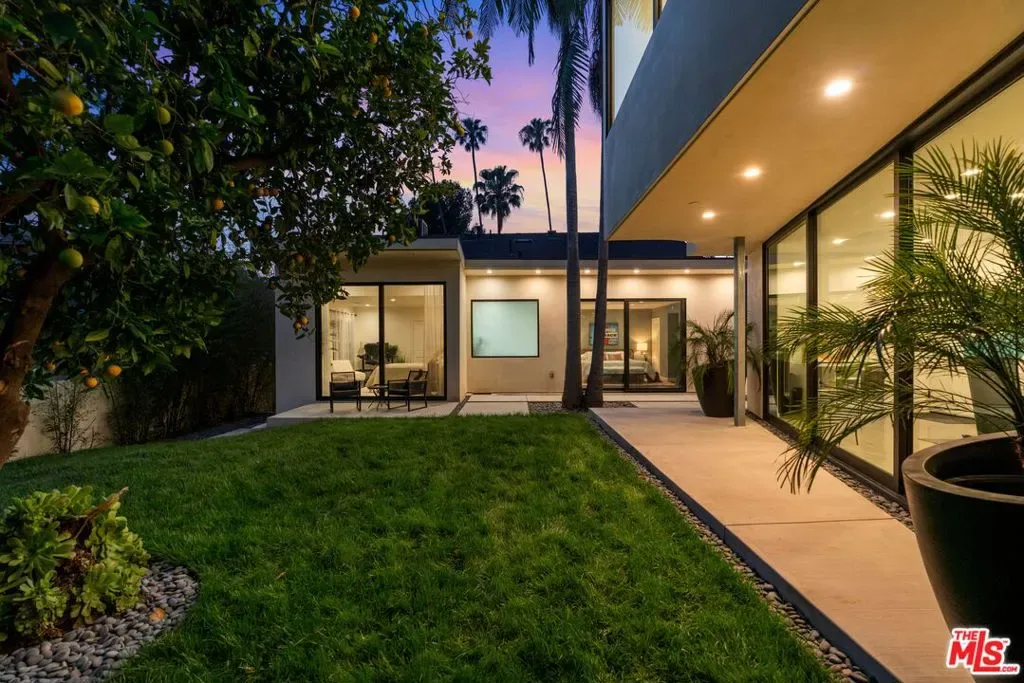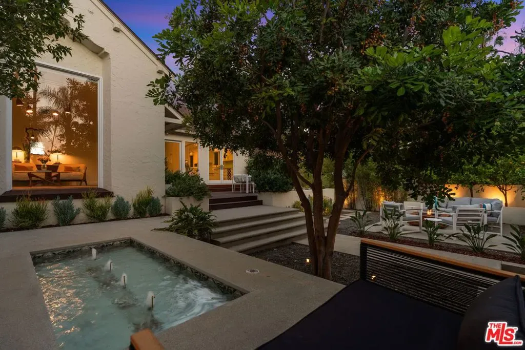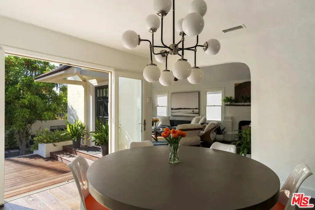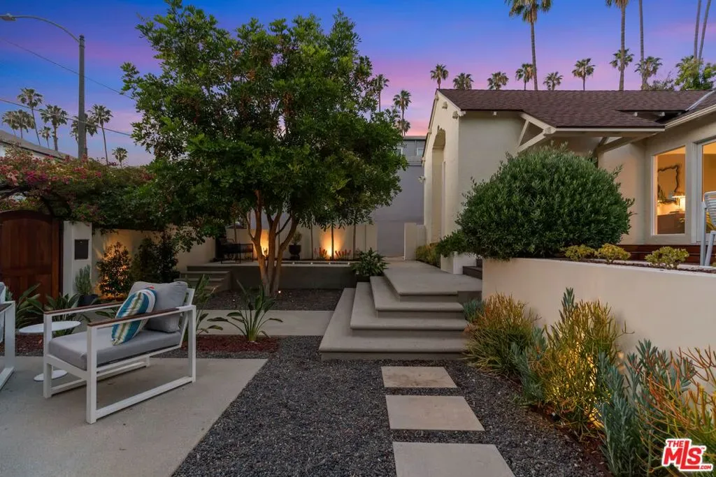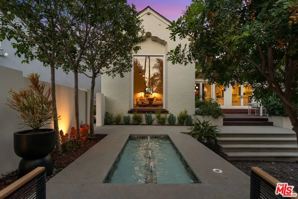 Reimagined and expanded, this 1920 California Bungalow sits gracefully in the coveted Sunset Square HPOZ. A brand-new 2026 ADU and versatile bonus room complete this private mini compound, nestled on a generous gated lot surrounded by mature landscaping, offering serenity and seclusion in the center of Hollywood. The main residence features 3 bedrooms and 2 bathrooms, blending original architectural details such as coved ceilings, double-hung windows, and arched doorways with fresh modern updates, including new wood floors and thoughtfully redesigned bathrooms. Abundant natural light pours through the glass walls, creating a seamless flow between the indoor and outdoor living spaces. The chef’s kitchen, equipped with a Viking range, opens onto an expansive ipe deck that wraps the home, featuring multiple outdoor living and dining areas, ideal for entertaining or relaxed California living. The newly constructed ADU mirrors the home’s classic arched design and features a fully detached bedroom and bath with views of the city lights. Perfect as a guest suite, studio, or potential rental, it adds exceptional flexibility. Below the ADU is a bonus space with a half bath and a wet bar, currently styled as a home gym, that faces the yard and the main house. Completing this unique sanctuary are an outdoor kitchen, a tranquil fountain, and beautifully cultivated gardens that blur the lines between indoor comfort and outdoor luxury, embodying the quintessential California lifestyle.